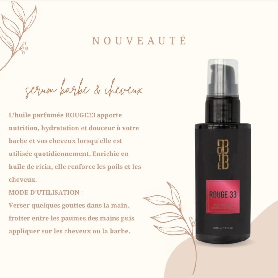 Huile parfumée barbe et cheveux - Senteur Rouge 33 Cosmetique