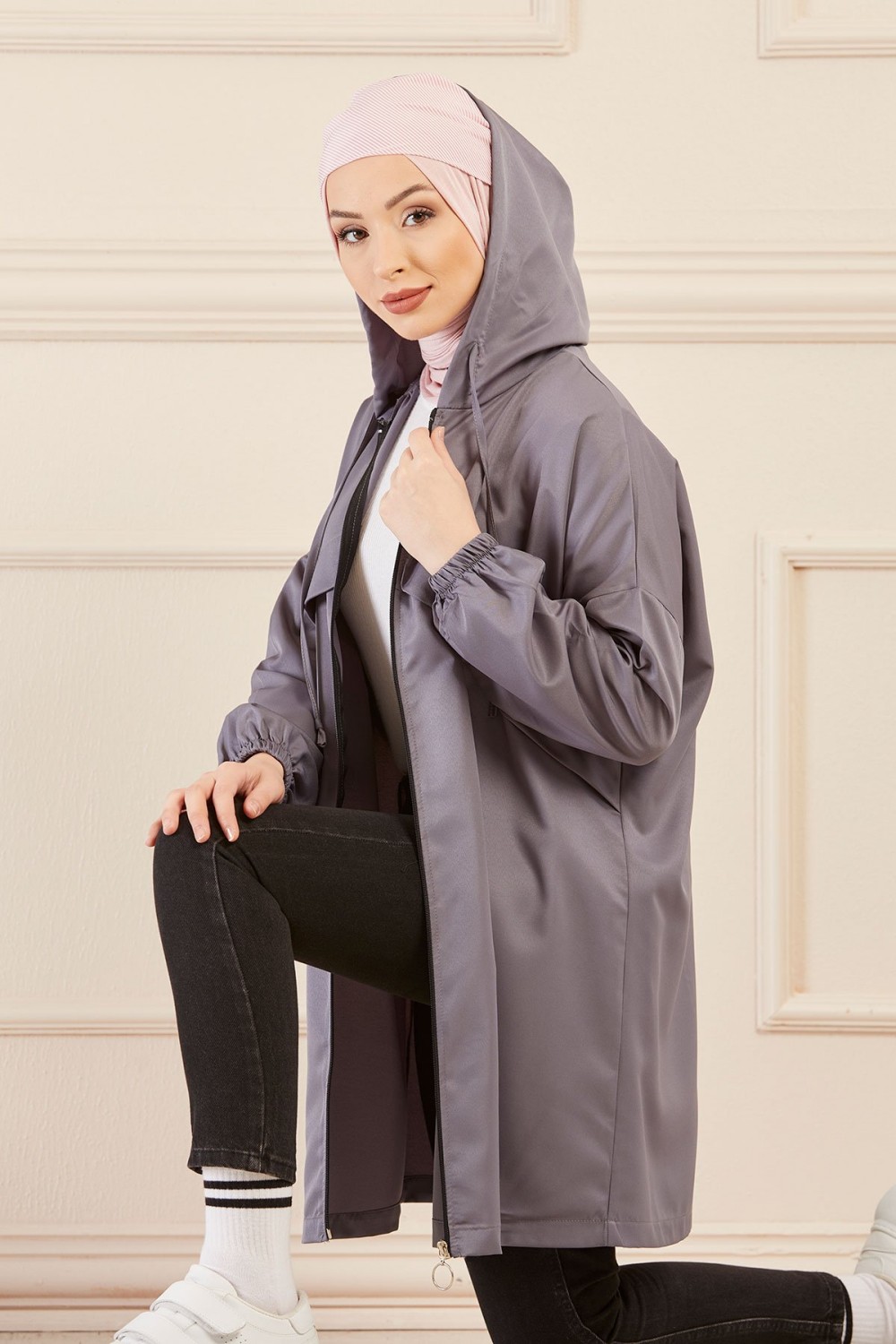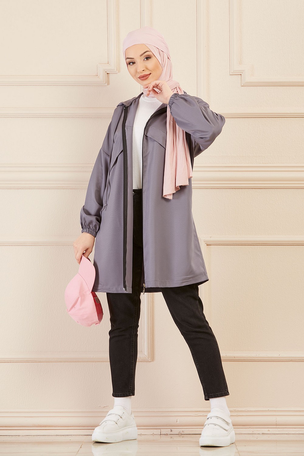 Impermeable ample pour femme (Tenue Hidjab Automne Hiver) - Couleur gris