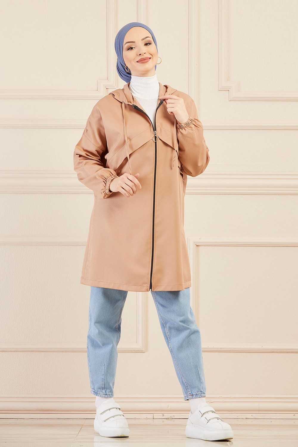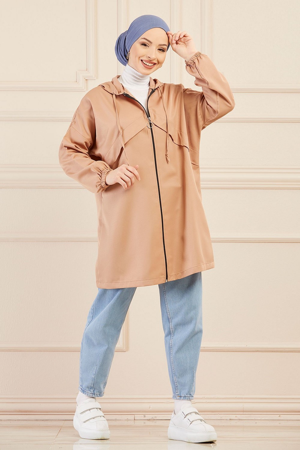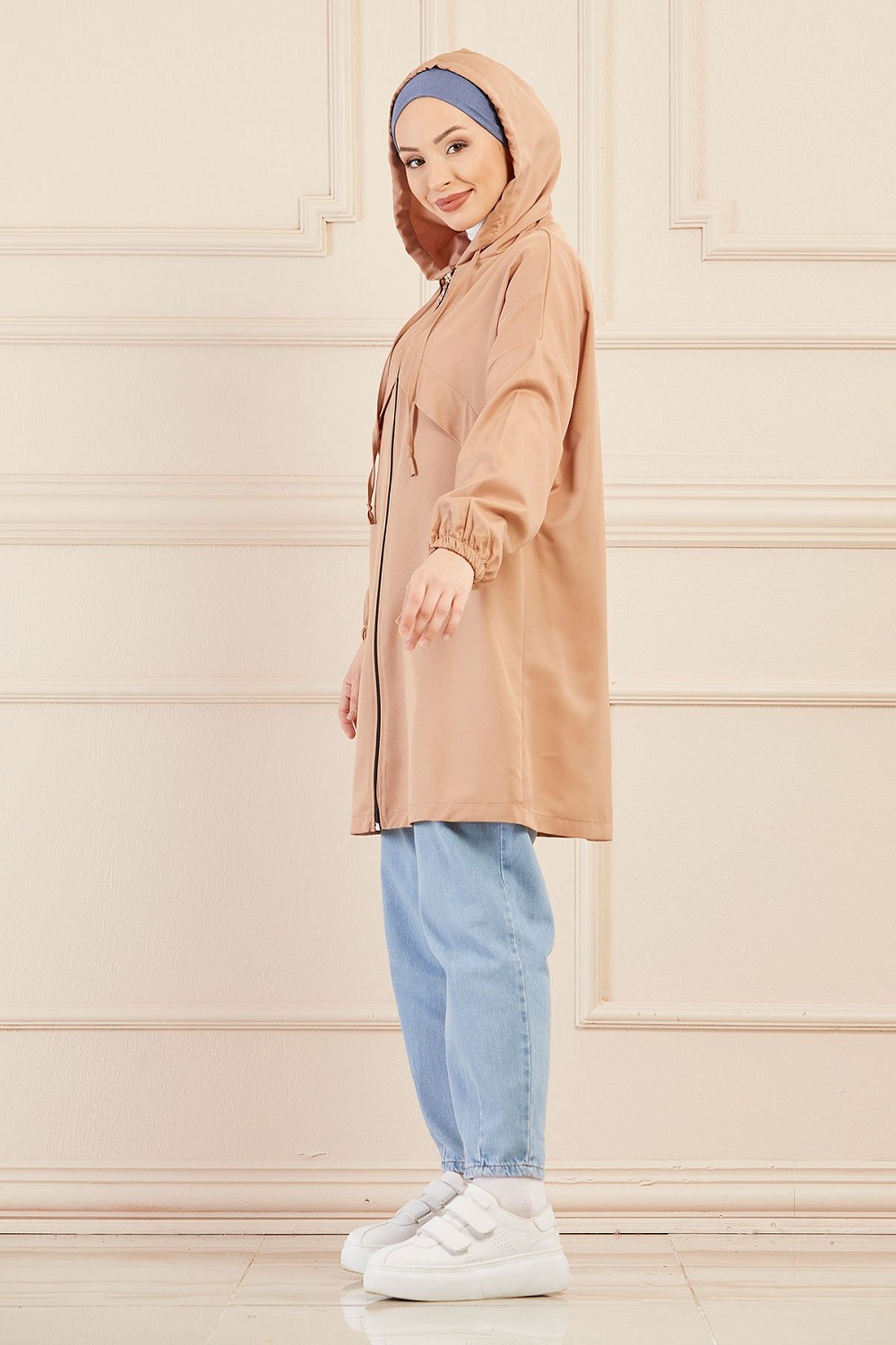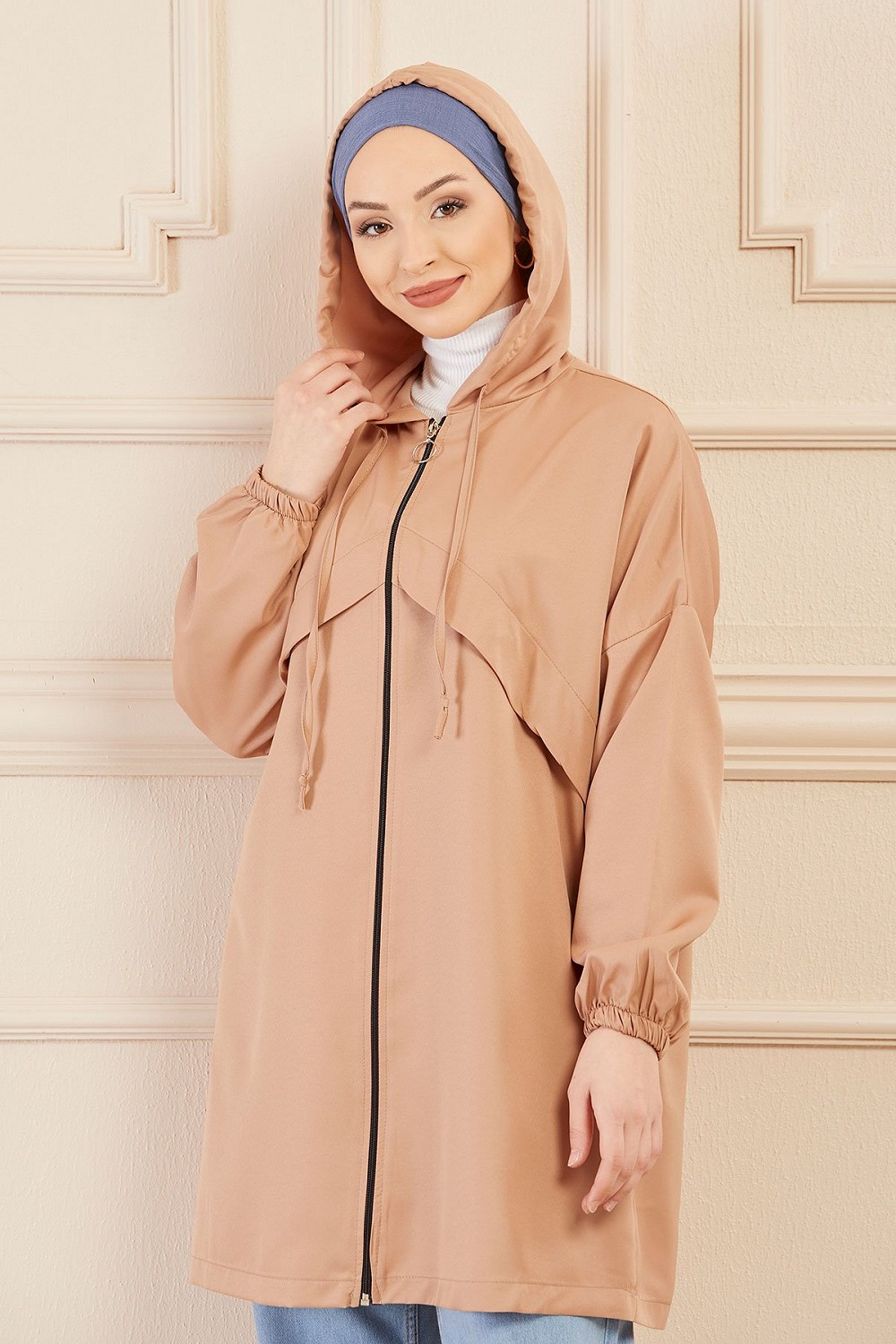 Veste moderne style décontracté avec fermeture zip (Vetement femme voilée) - Couleur beige - REF. 32849 (24.90 €) - En Promotion à 19.00 €