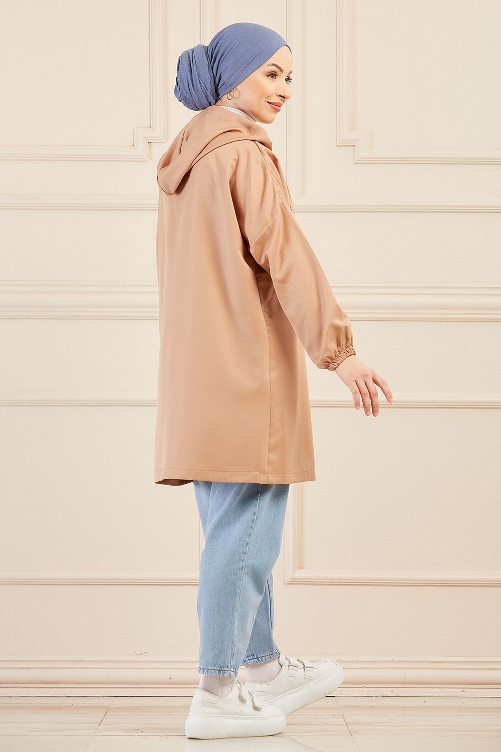 Veste Tunique boutonnée à capuche (Vetement décontracté femme hijab) - Couleur beige - REF. 31894 (19.90 €)