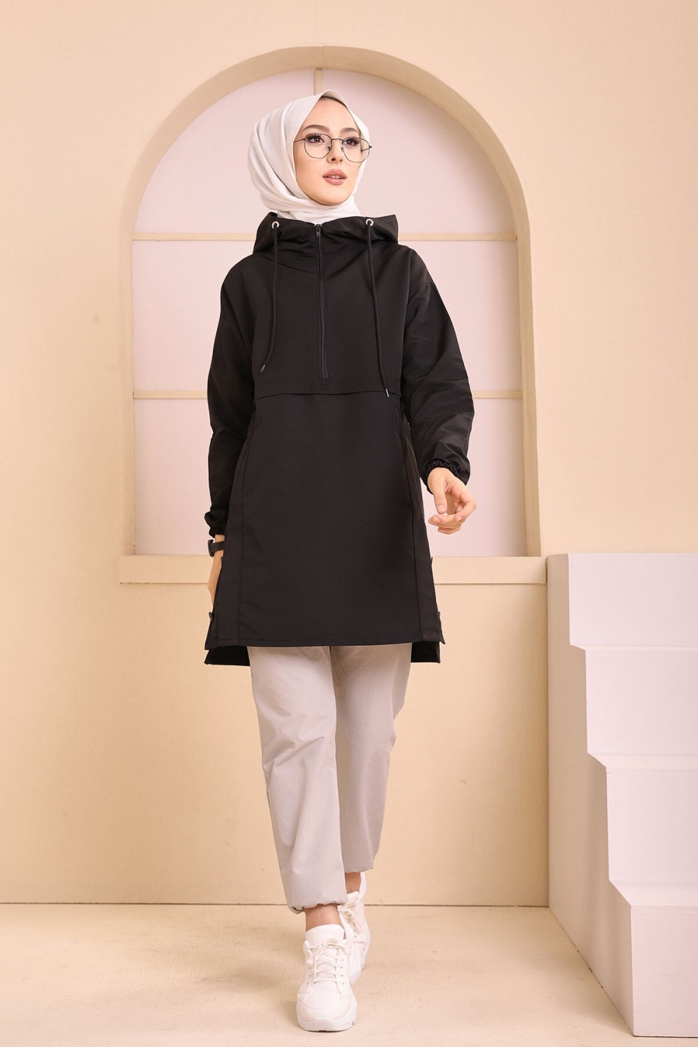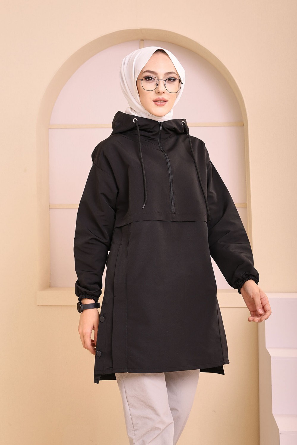 Impermeable femme a capuche (Tenue Hijab Saison Hiver) - Couleur noir