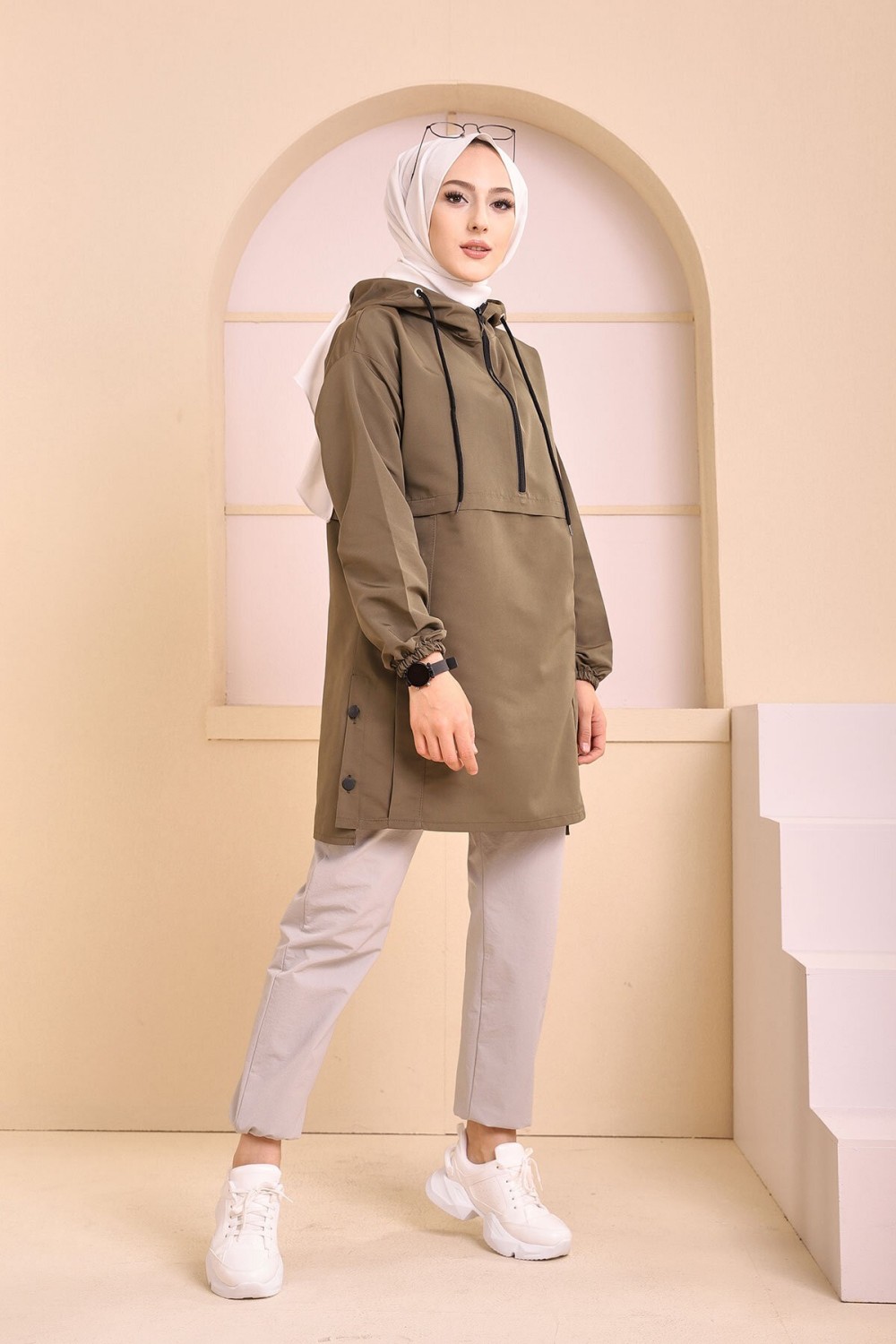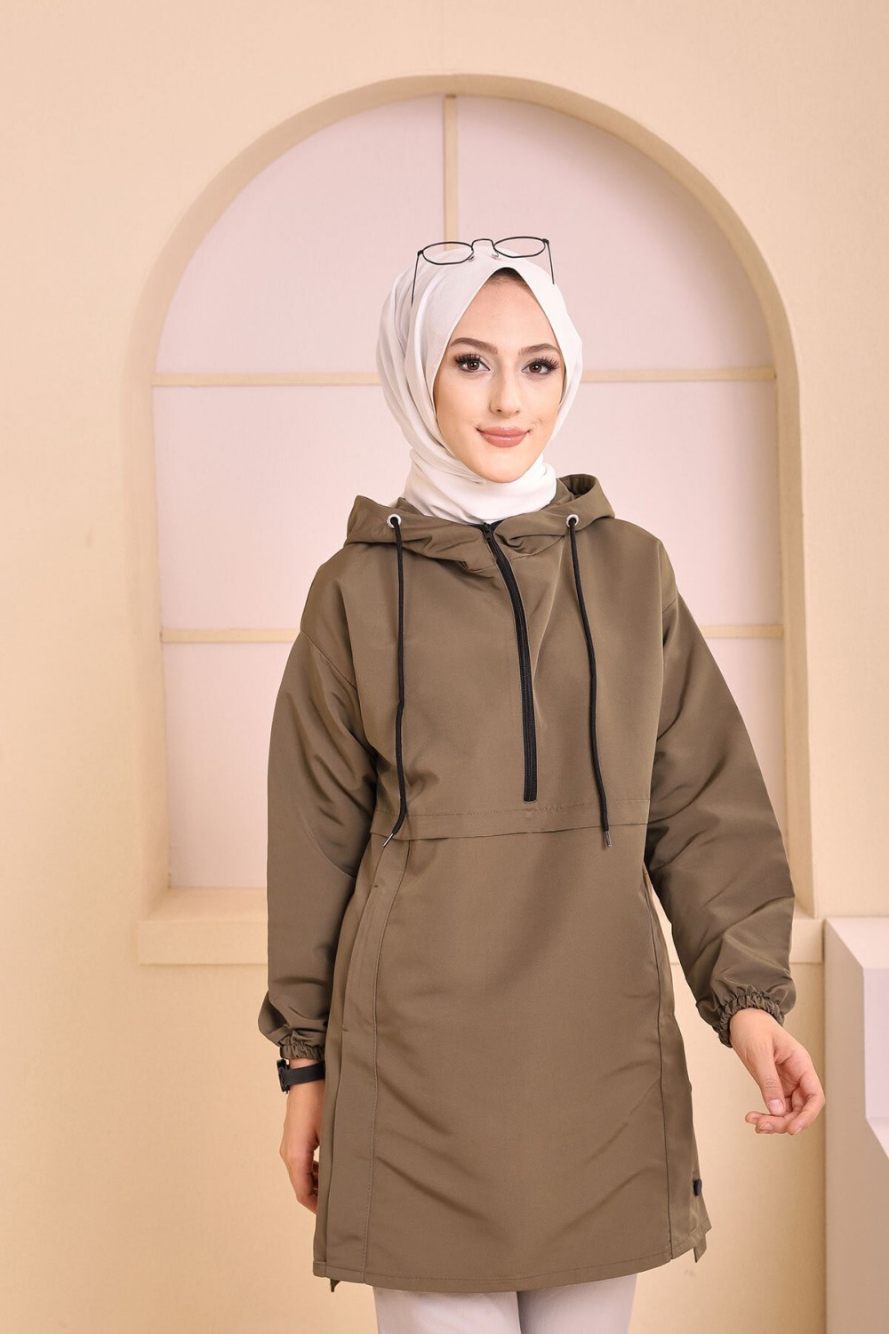 Imperméable femme à capuche (Vêtement Décontracté et Chic Hijab Saison Hiver) - Couleur kaki Vetement & Accessoire