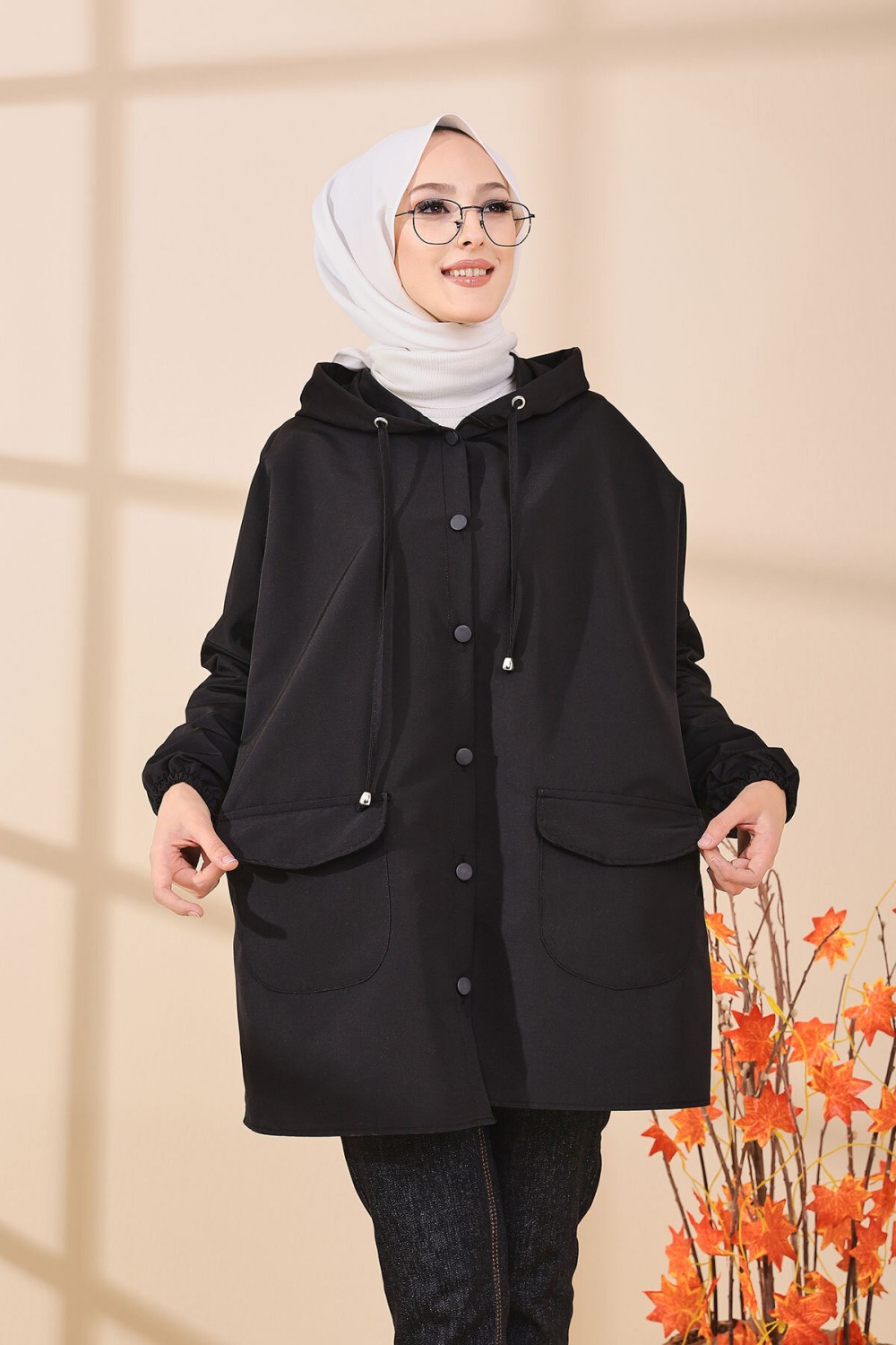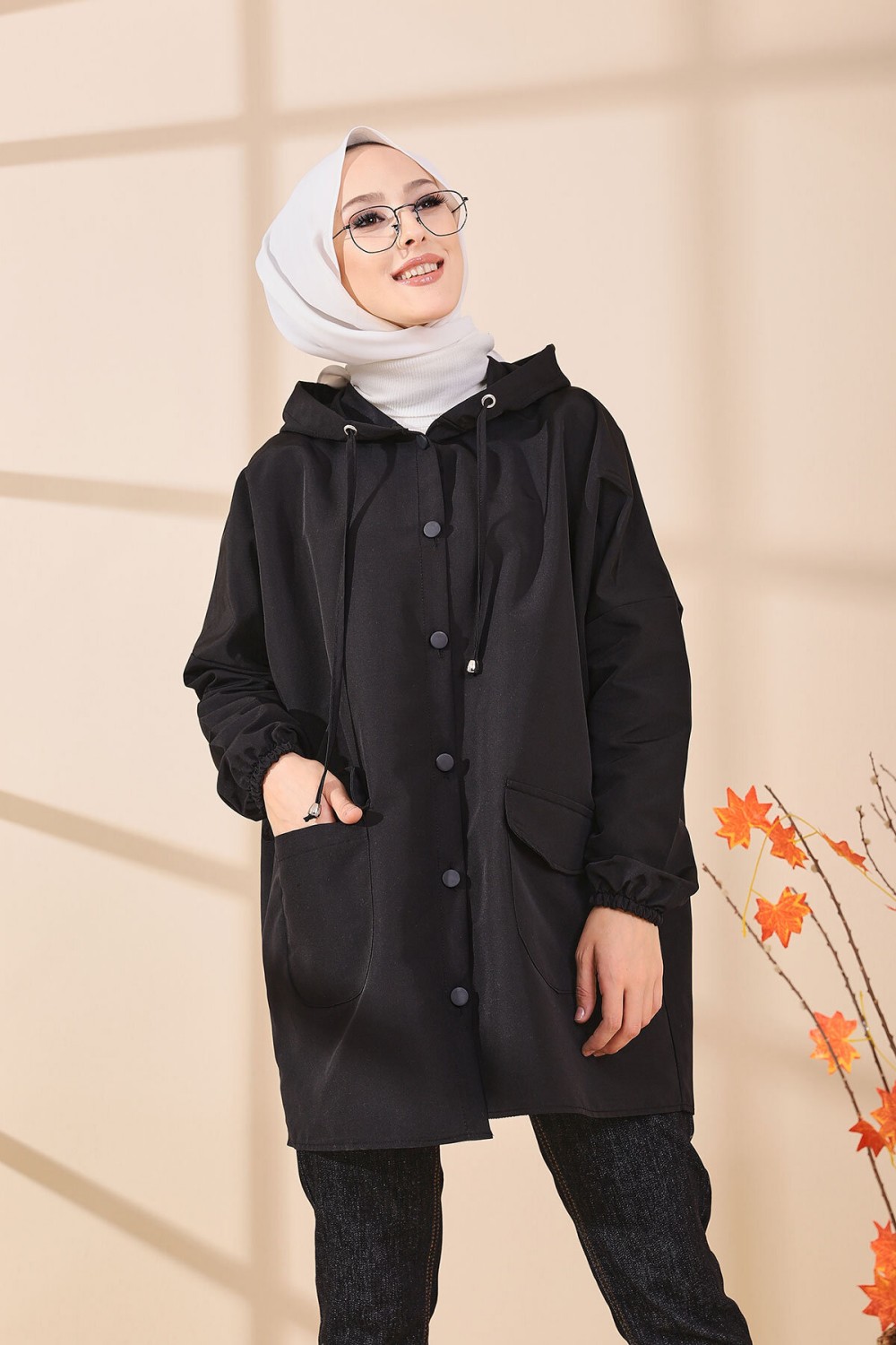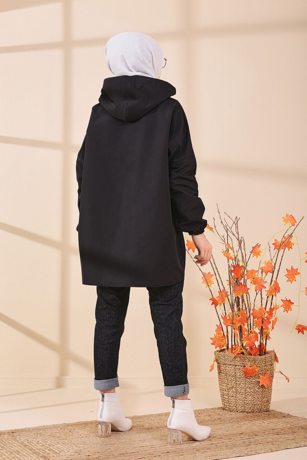 Tunique décontractée ample avec grande poche (Sweat femme Hijab) - Couleur noir - REF. 37550 (22.00 €)