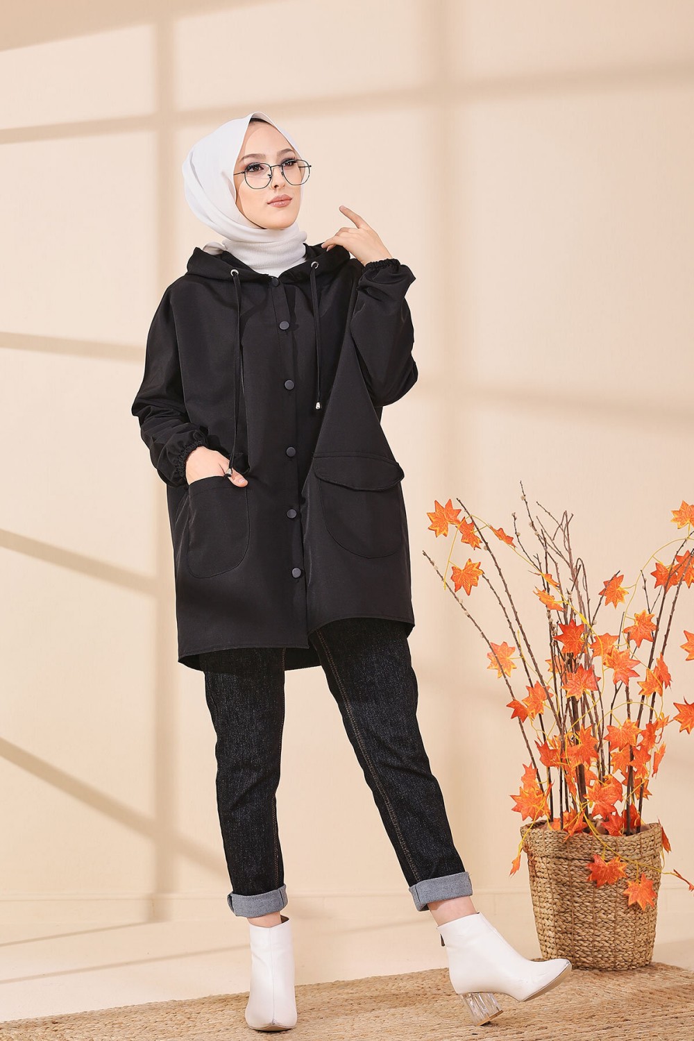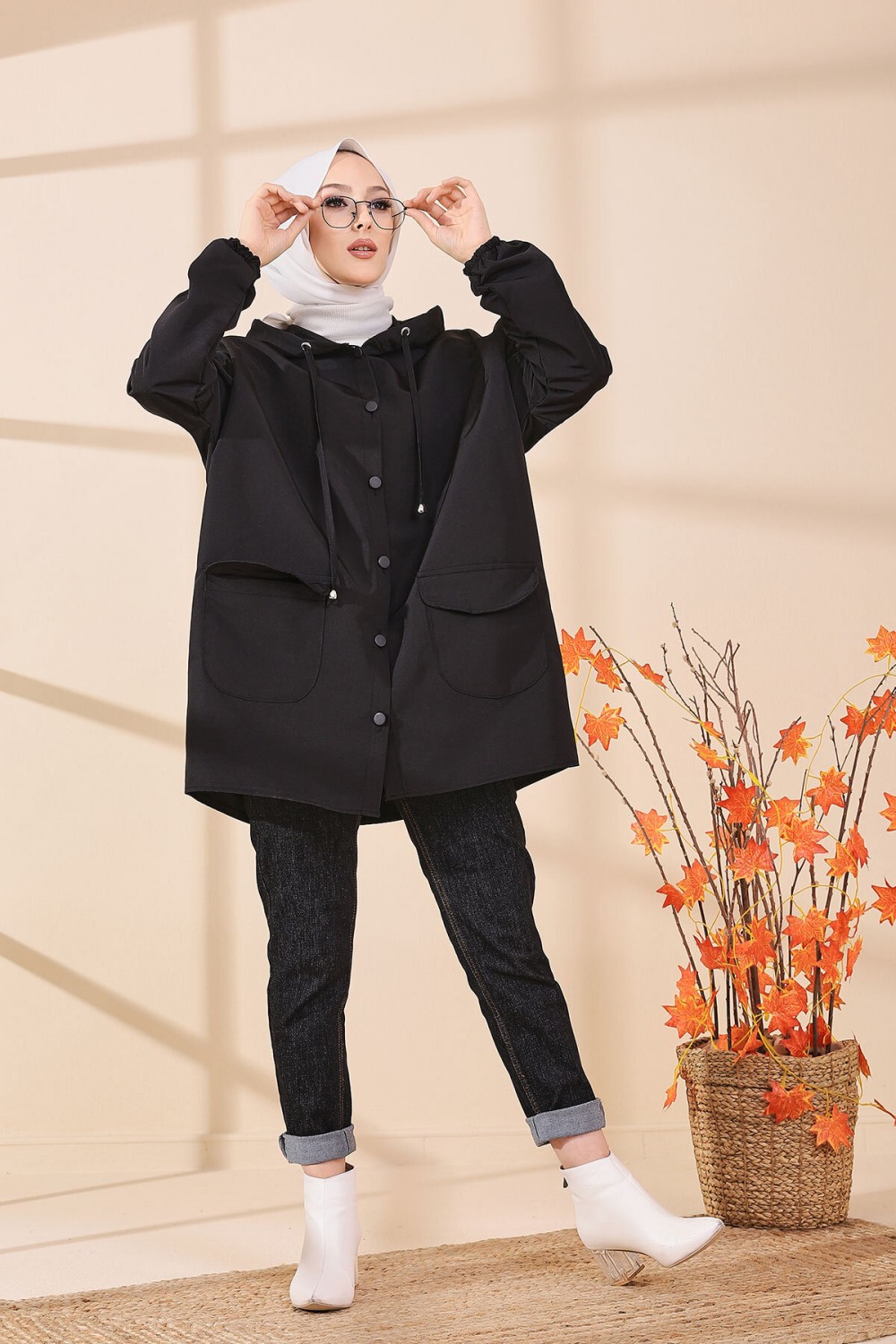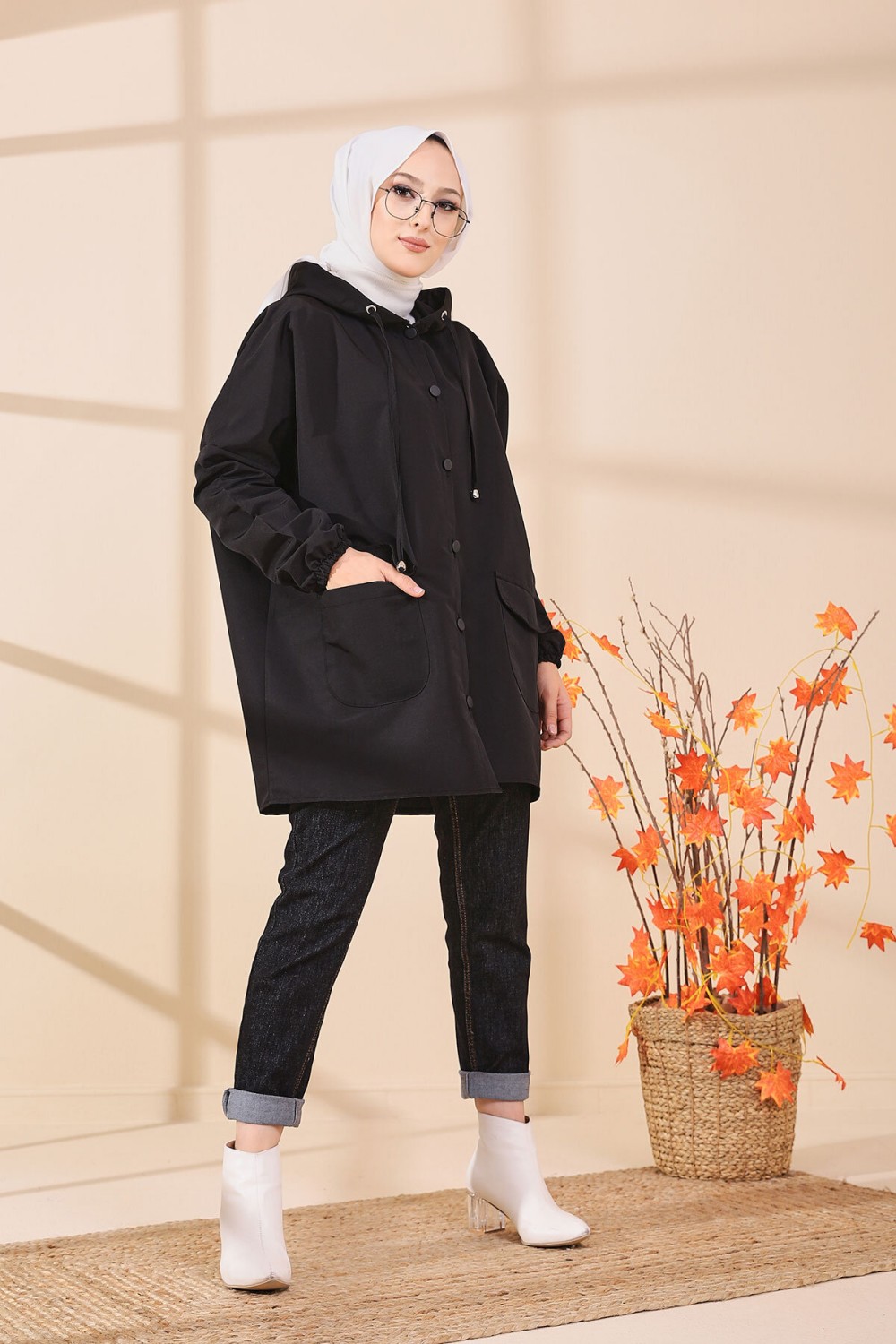 Tunique décontractée ample avec grande poche (Sweat femme Hijab) - Couleur noir - REF. 37550 (22.00 €)