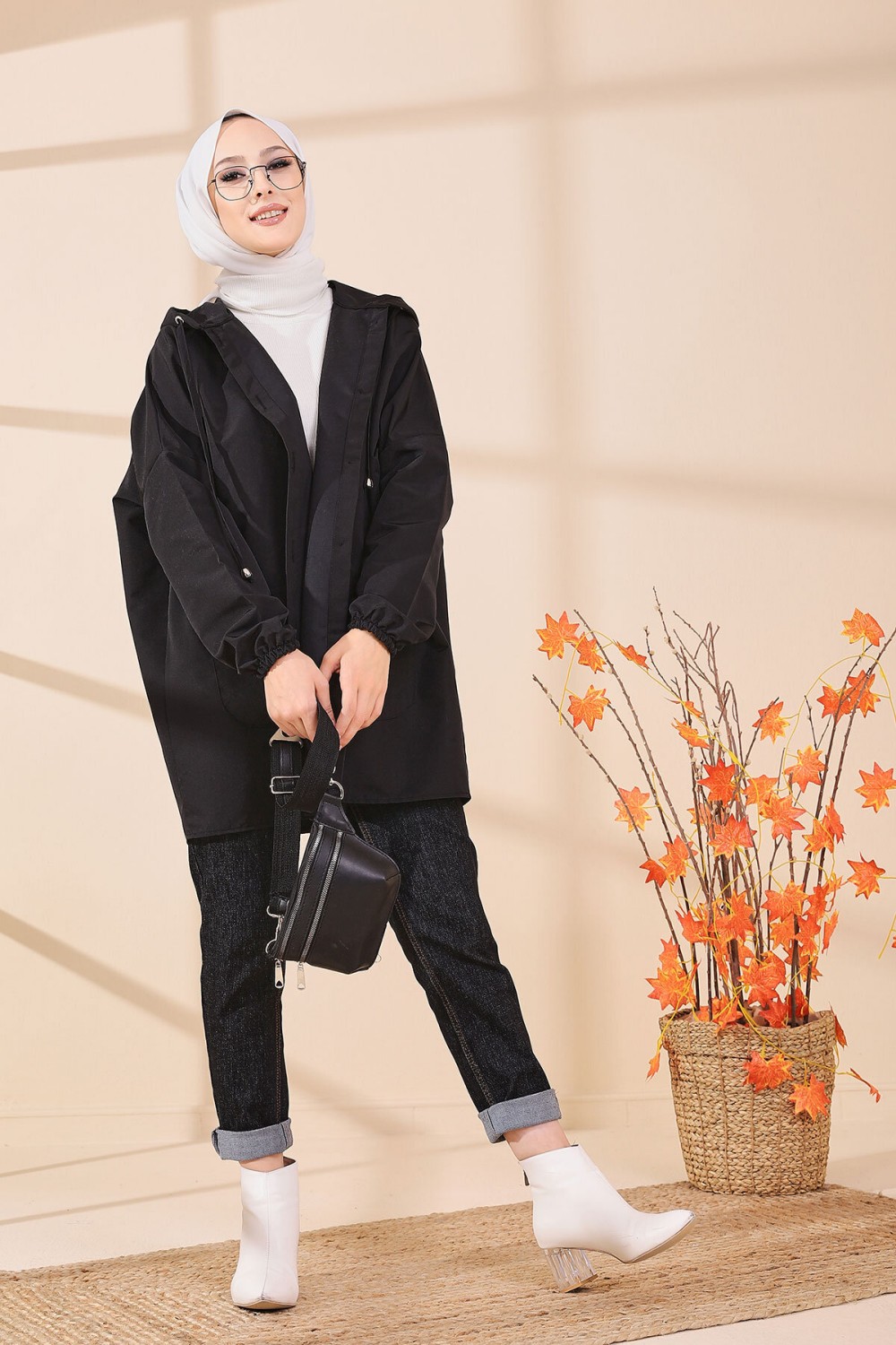 Veste Manteau femme avec ceinture intégrée (Tunique Automne Hiver - Boutique en ligne Vêtements Hijab Turquie) - Couleur noir et prune - REF. 38713 (19.90 €)