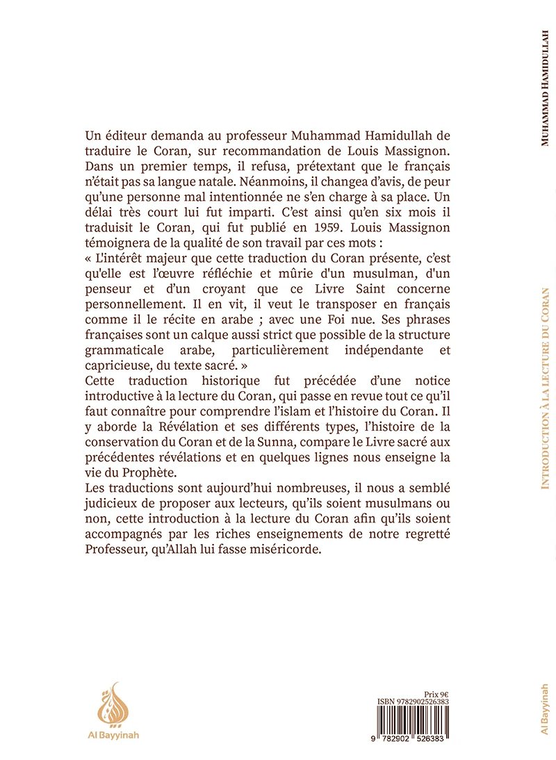 Les traductions sont aujourd’hui nombreuses, il nous a semblé judicieux de proposer aux lecteurs, qu’ils soient musulmans ou non, cette introduction à la lecture du Coran afin qu’ils soient accompagnés par les riches enseignements de notre regretté Professeur, qu’Allah lui fasse miséricorde.