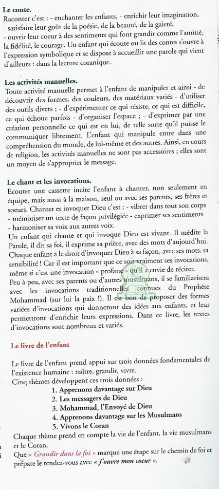 Une éducation islamique enracinée dans la vie de l'enfant et fondée sur la parole de Dieu. Ce cheminement peut-être vécu en famille, à la mosquée ou à l'école.
