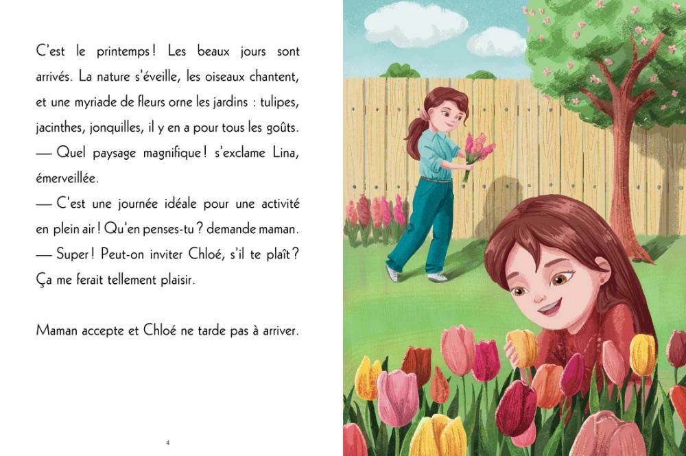 Aujourd’hui, c’est le printemps ! Maman organise une sortie au parc avec les enfants. Lina a très envie de se balader à vélo et d’explorer la nature avec son amie Chloé…