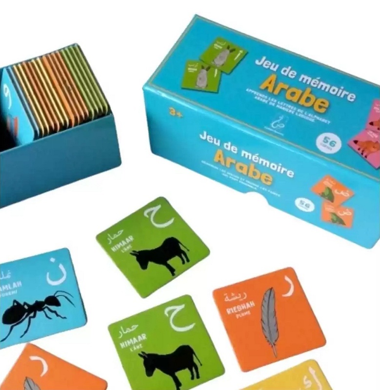 L'alphabet arabe : Jeu de mémoire des lettres arabes - 56 cartes - لعبة الذاكرة للحروف العربية - REF. 23762 (12.90 €)