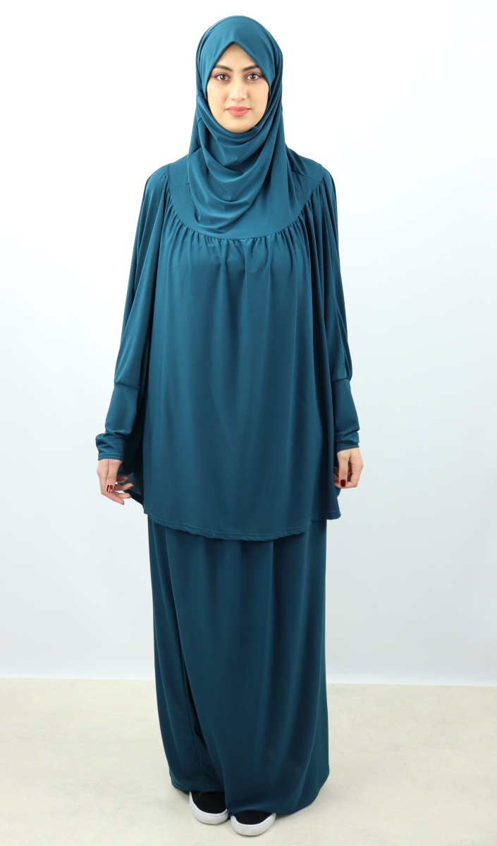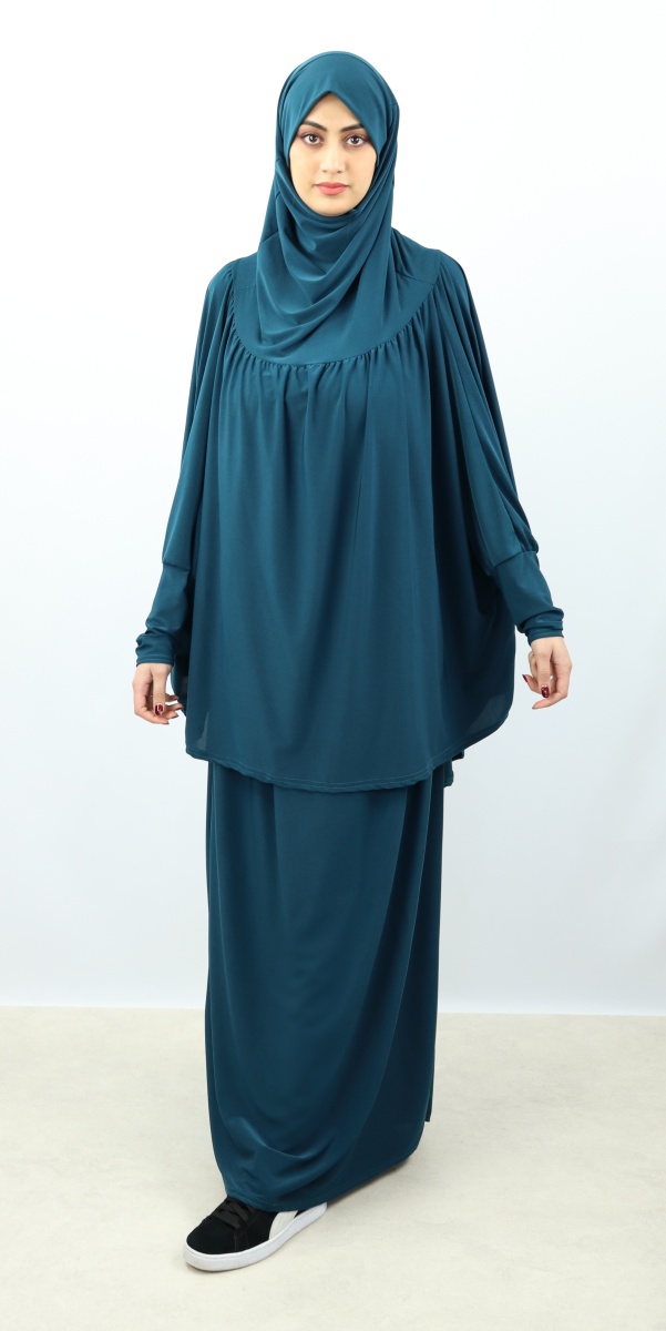 Jilbab ample deux pièces jupe + cape (taille standard pour femme) - Couleur vert canard