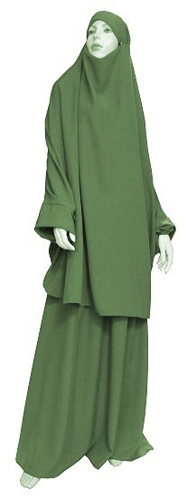 Jilbab deux pieces (Cape + Jupe) - Tissu de qualite superieure - Couleur vert bouteille