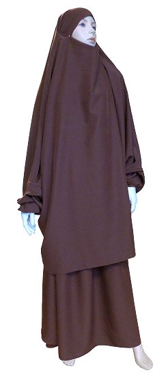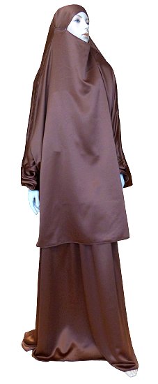 Jilbab réversible (satiné/normal) deux pièces (Cape + Jupe évasée) - Taille L/XL - Coloris marron chocolat - REF. 20360 (38.00 €)
