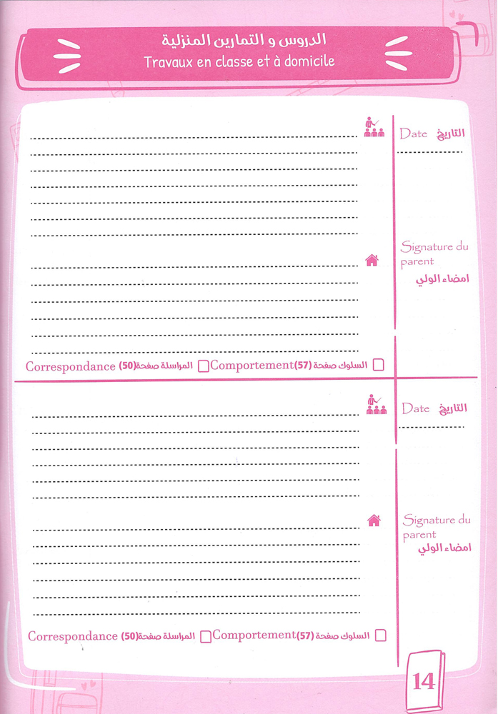 Journal de classe violet (Carnet de correspondance) - دفتر المتابعة Livre