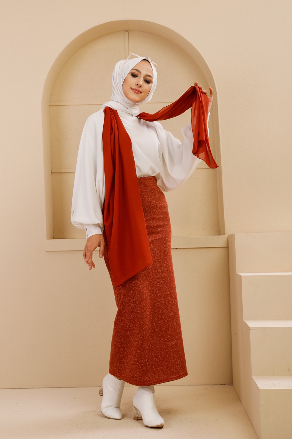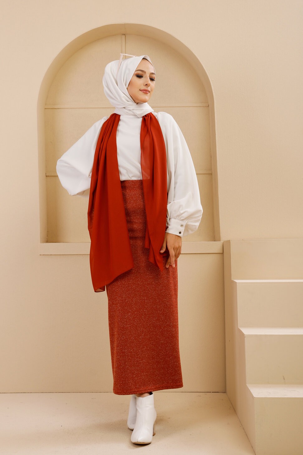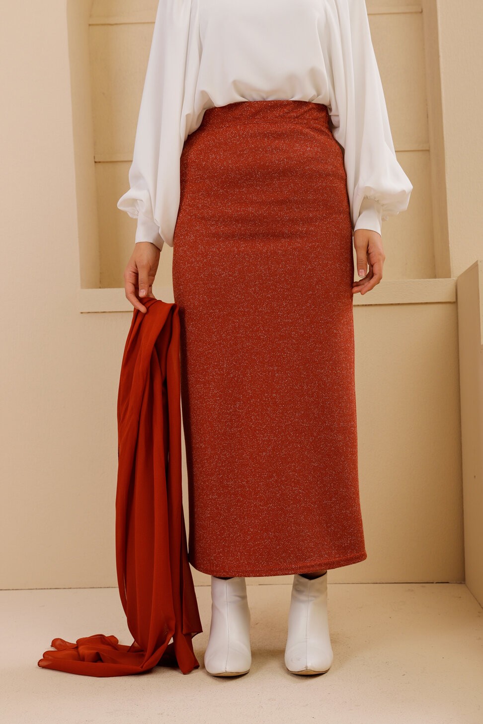 Jupe chaude automne hiver - Couleur brique