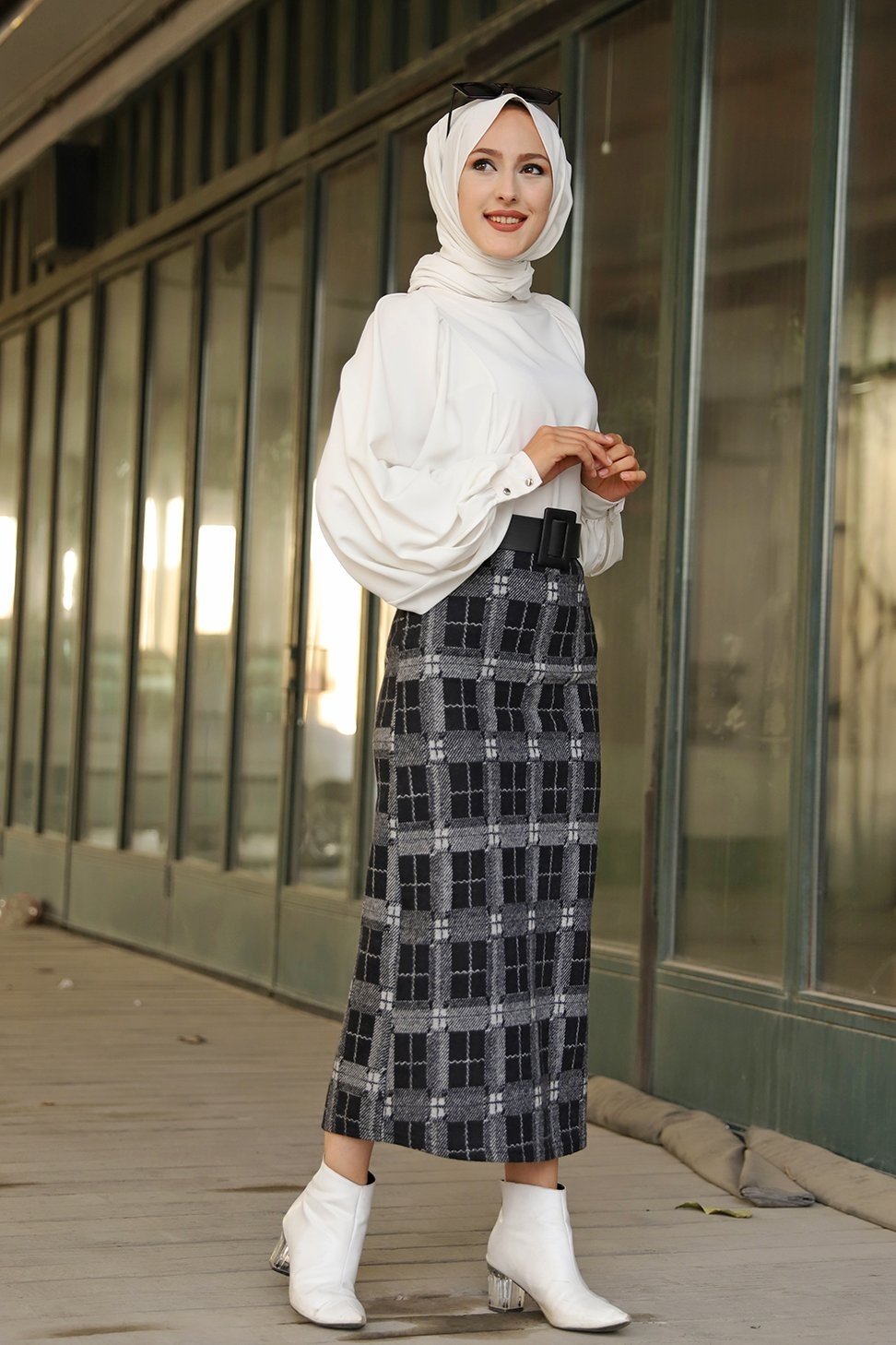 Jupe chaude pour femme (Vetement Saison Automne Hiver) - Couleur noir et gris