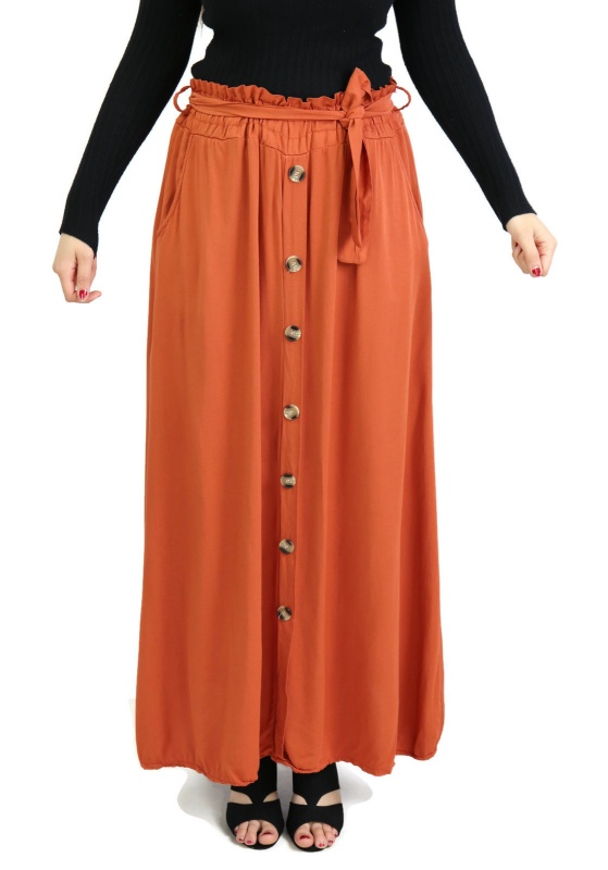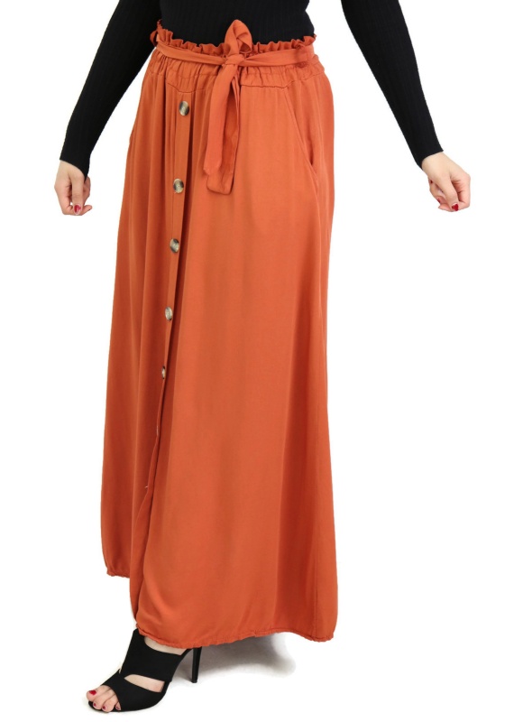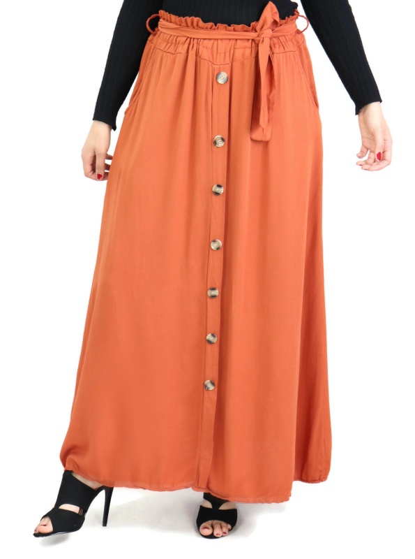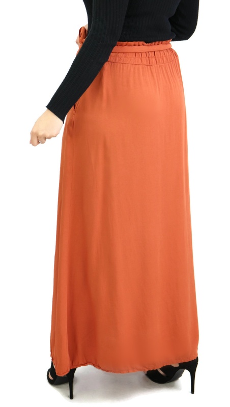 Belle jupe confortable et originale avec deux poches pour mettre vos effets. Sa taille est élastique et ornée d'une ceinture. Son tissu en viscose est léger et doux au toucher, elle est donc parfaite pour la saison printemps-été.