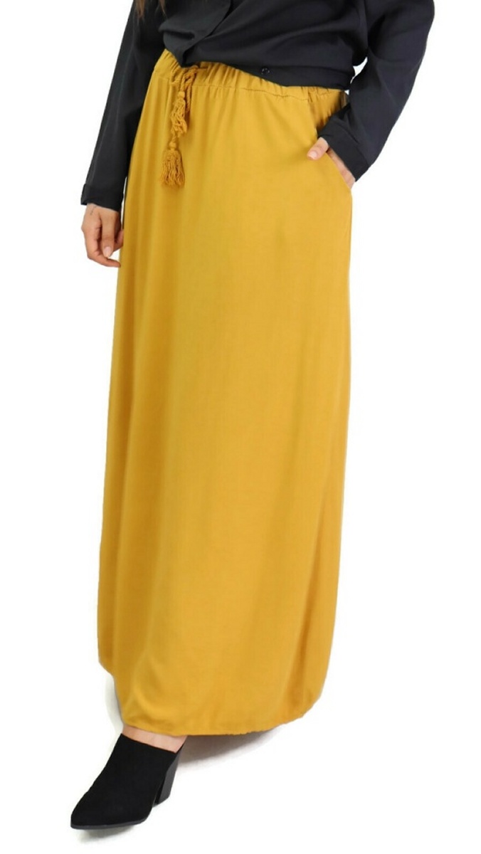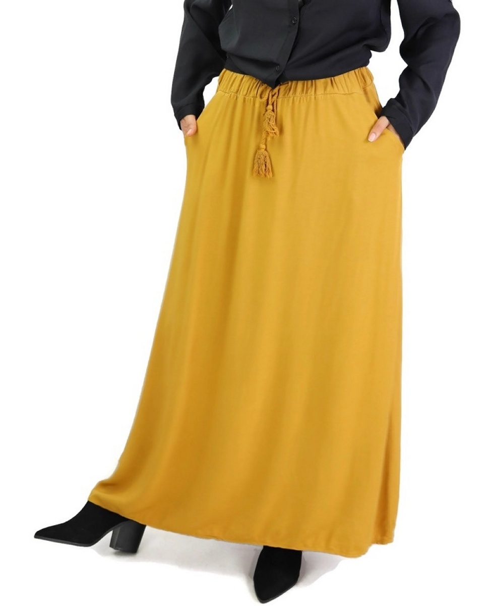 Succombez à cette jupe qui dispose de deux poches sur les côtés pour ranger vos effets, à la taille élastiquée avec cordelettes tressées que vous pouvez serrer ou nouer. Sa matière fluide et son tissu en viscose léger font d'elle la pièce à acquérir ce printemps-été.