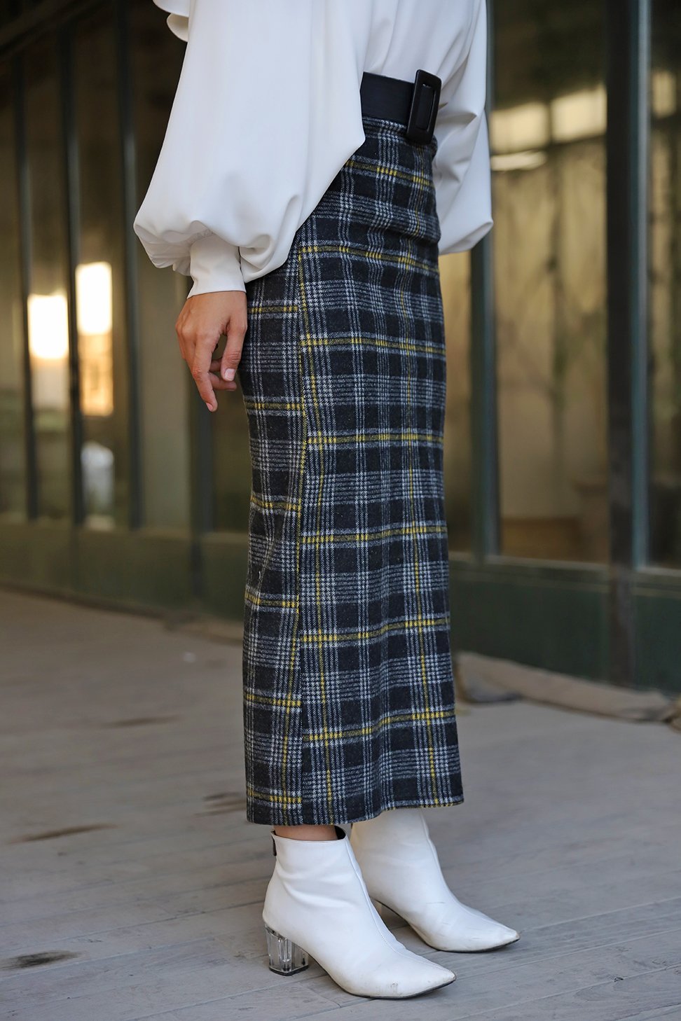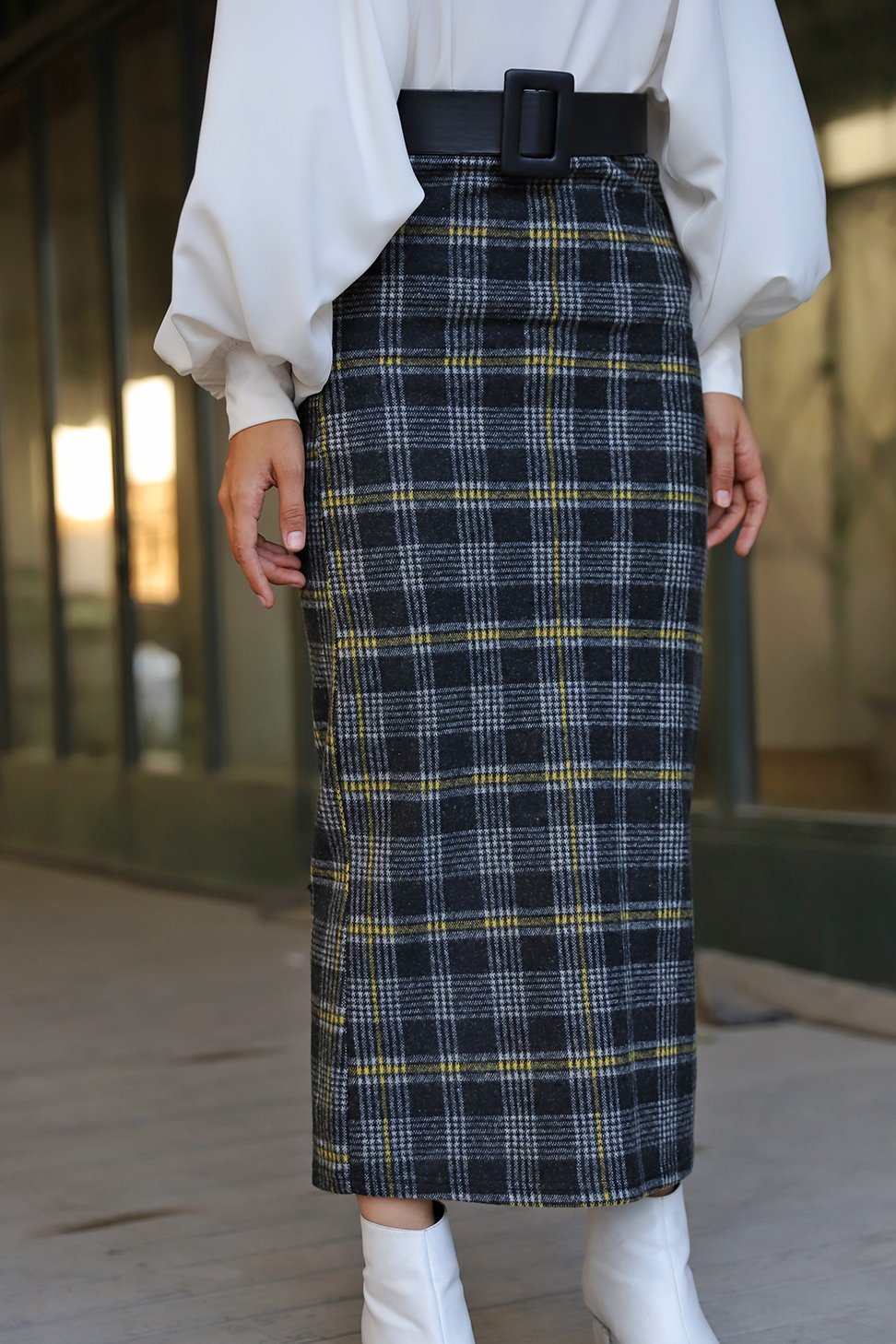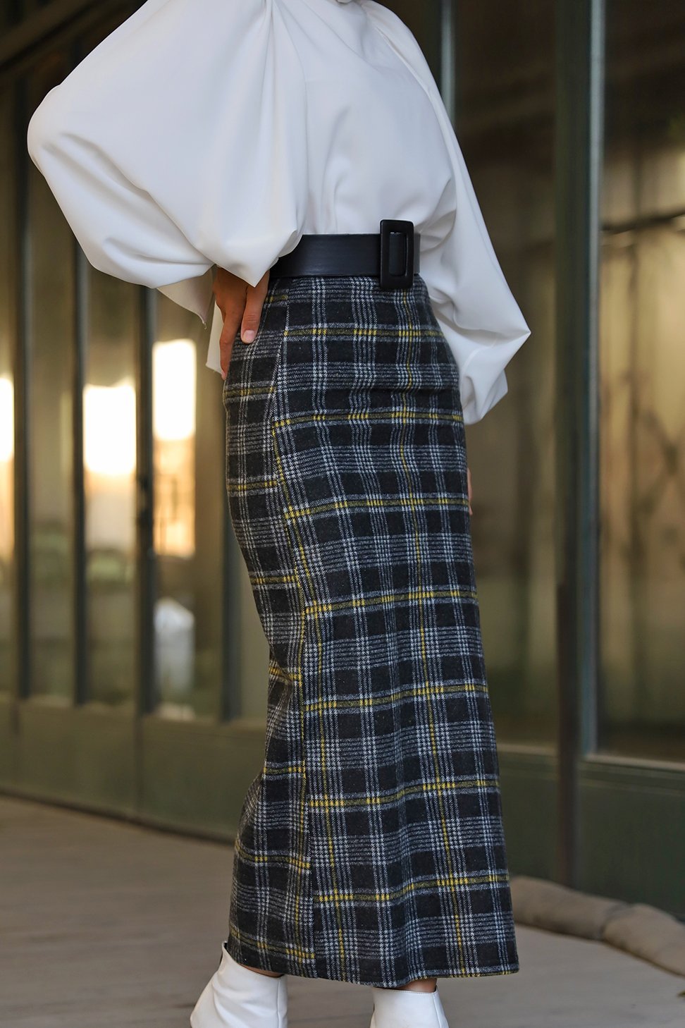 Jupe longue pour femme (Tissu chaud) - Couleur noir et moutarde Vetement & Accessoire