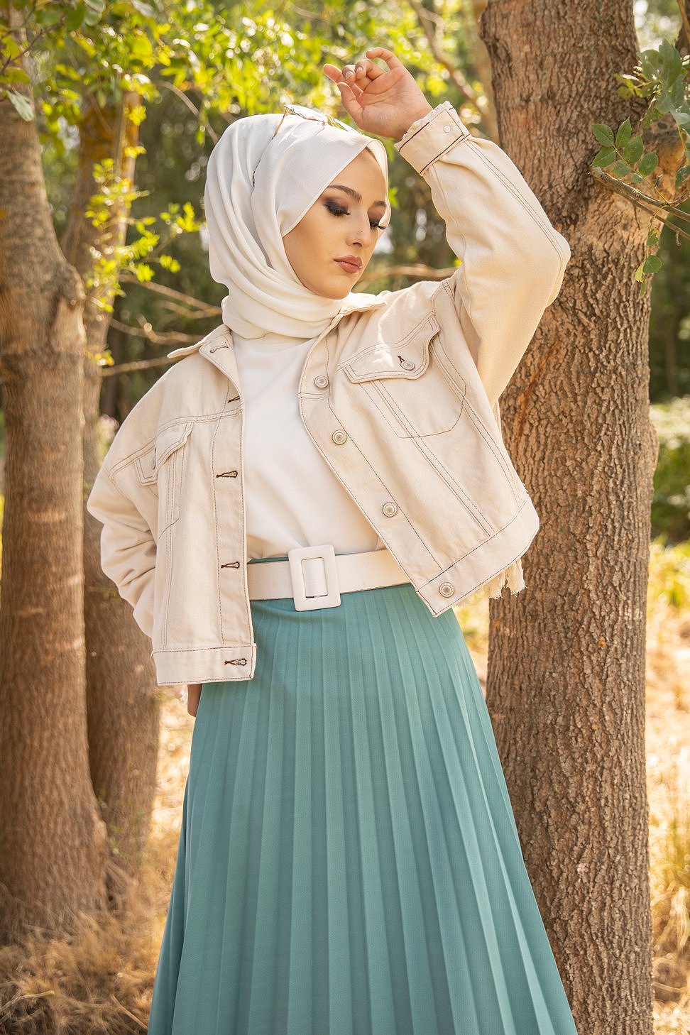 Jupe plissée pour femme (Mode Musulmane) - Couleur kaki - REF. 32286 (12.00 €) - En Promotion à 9.90 €