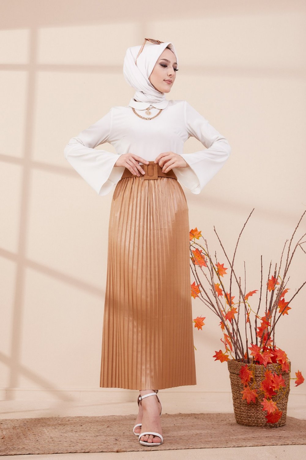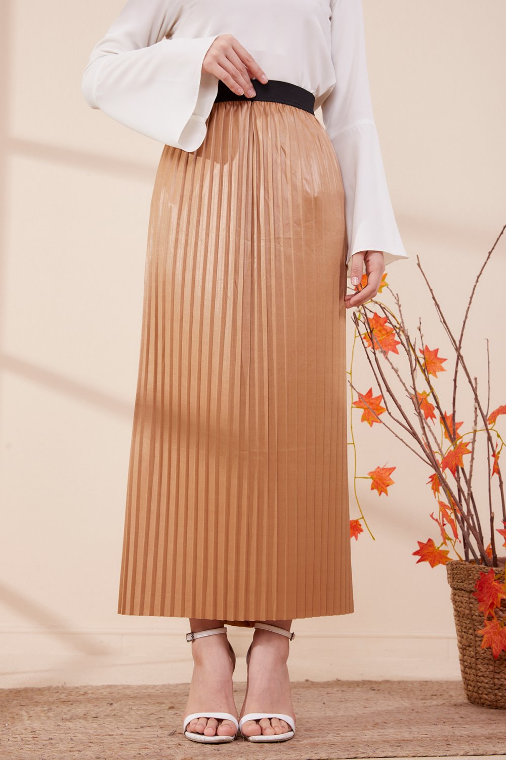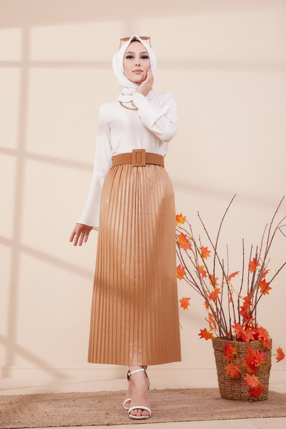 Jupe plissée pour femme - Couleur beige Vetement & Accessoire