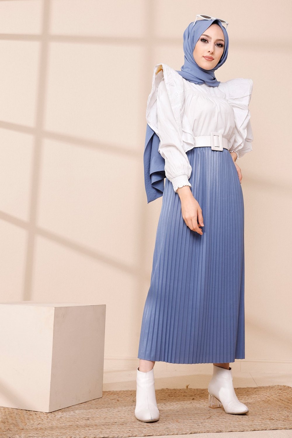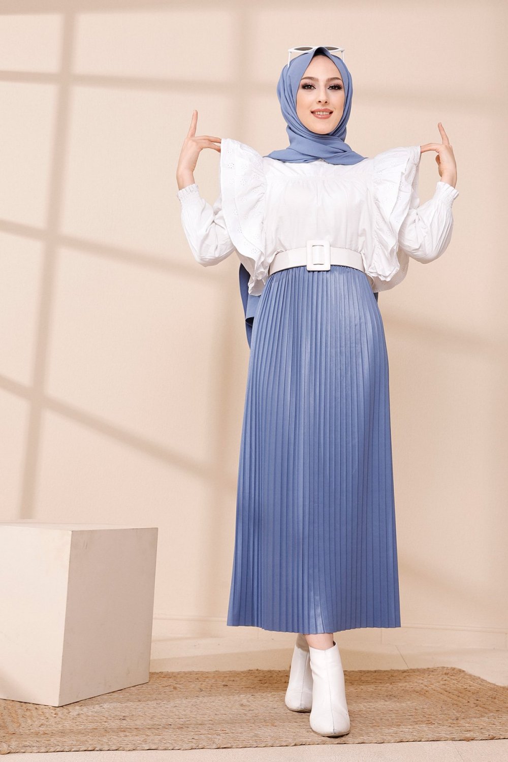 Jupe plissée pour femme - Couleur bleu indigo Vetement & Accessoire