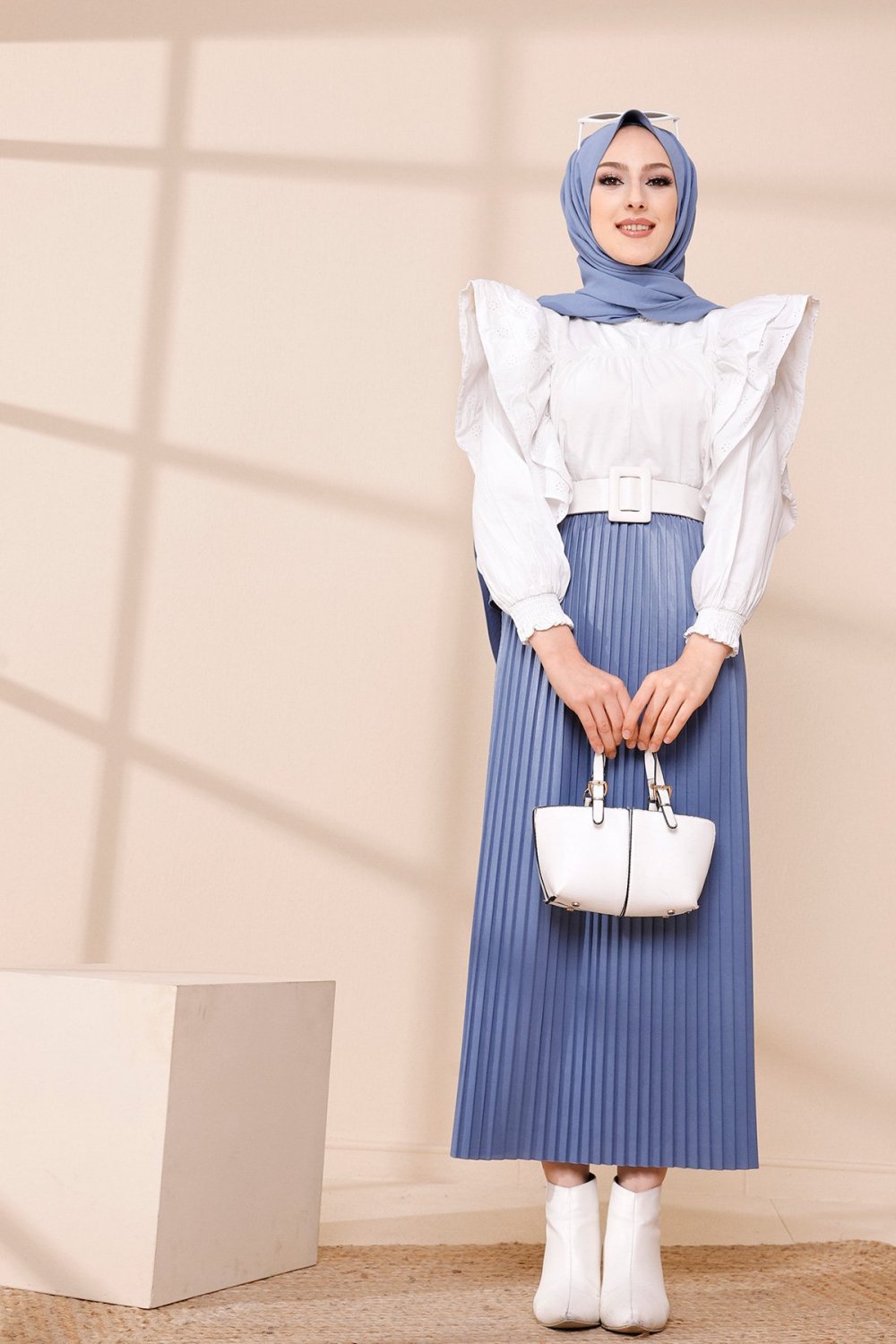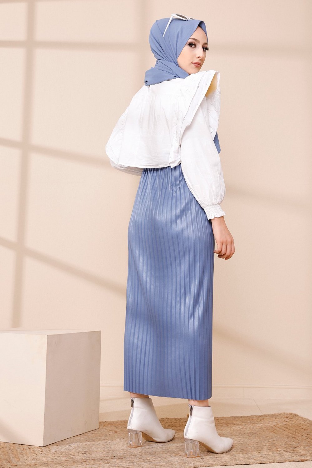 Jupe mi longue pour femme (Vetement Turquie en ligne) - Couleur bleu indigo - REF. 33258 (18.00 €)