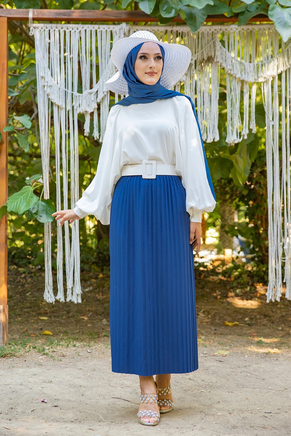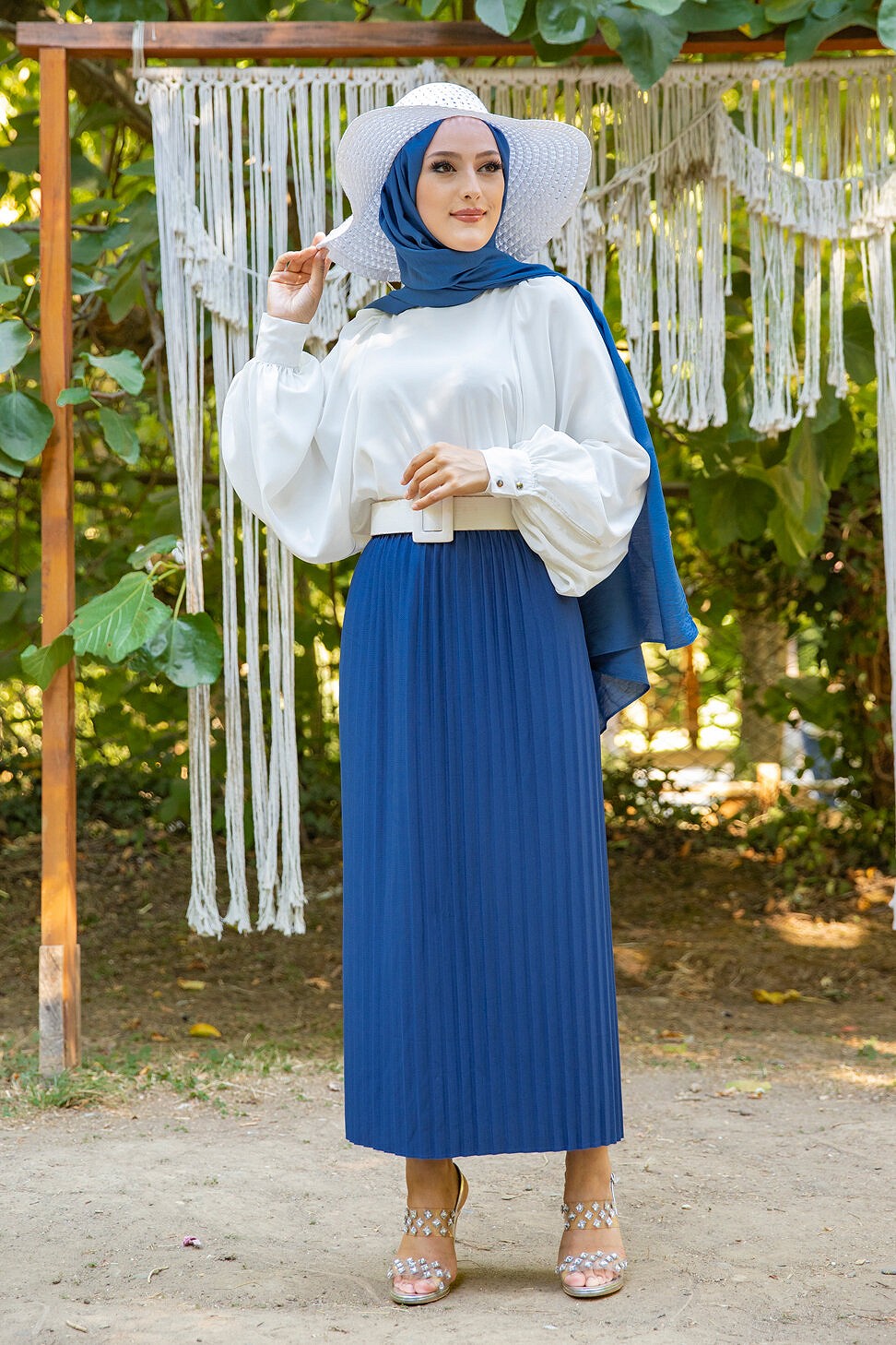 Jupe plissée pour femme - Couleur bleu Vetement & Accessoire