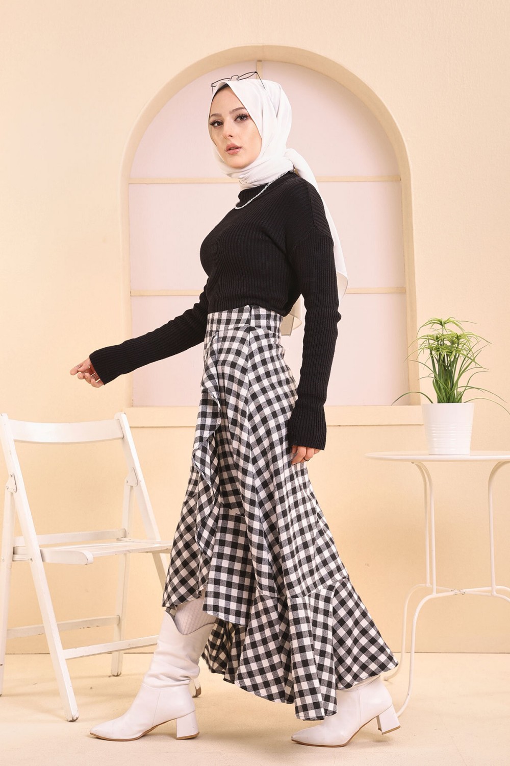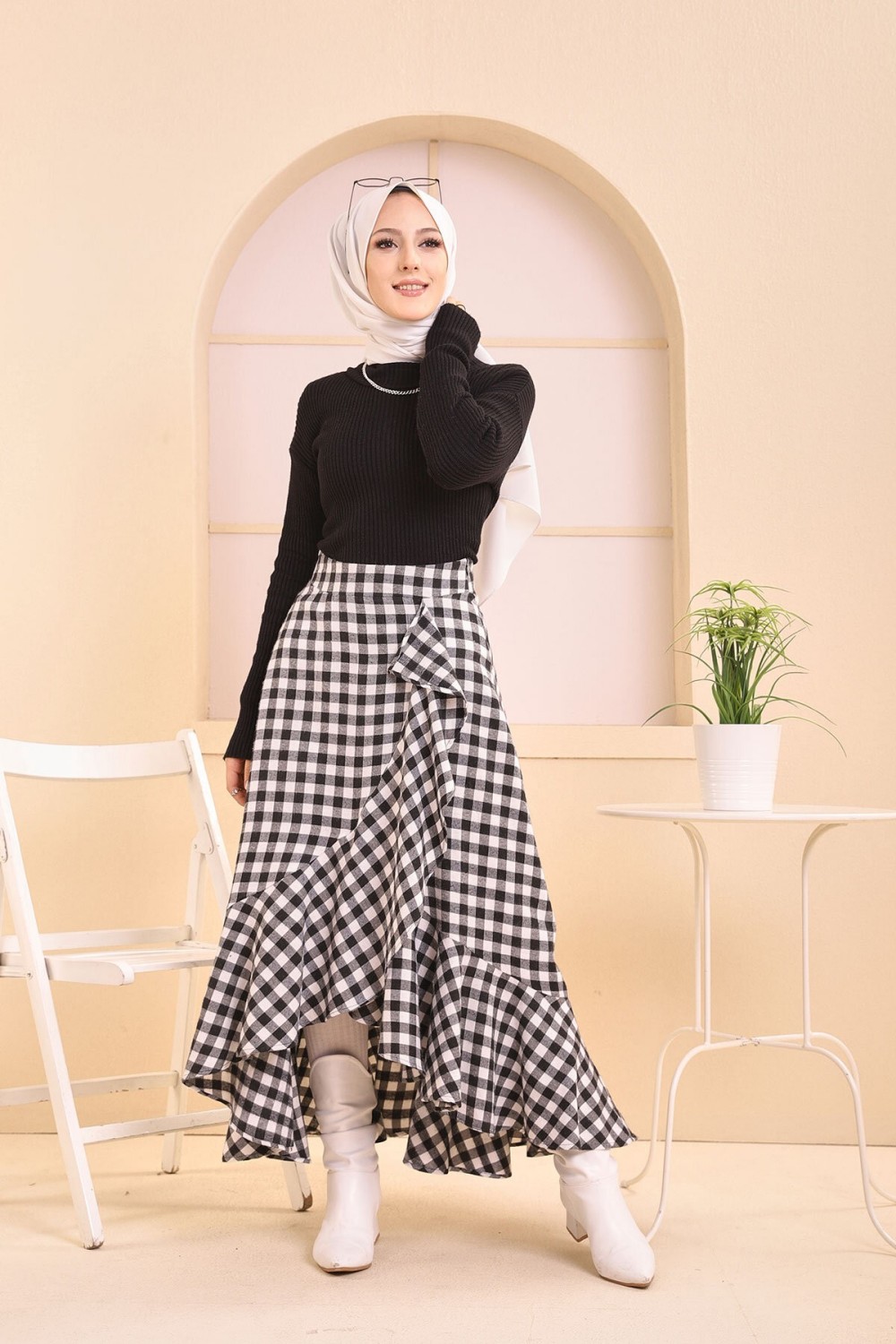 Jupe longue décorée de boutons (Vetement hijab) - Couleur vison - REF. 36546 (24.90 €)