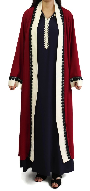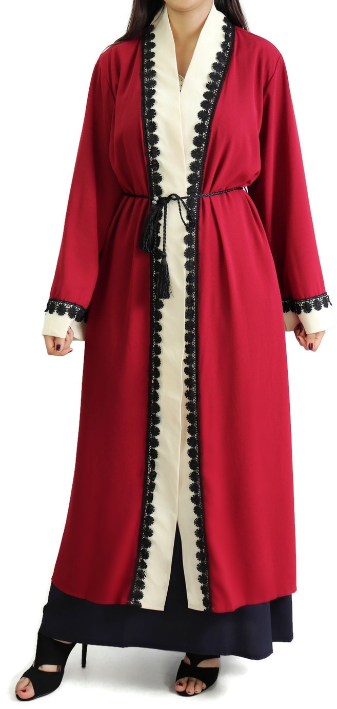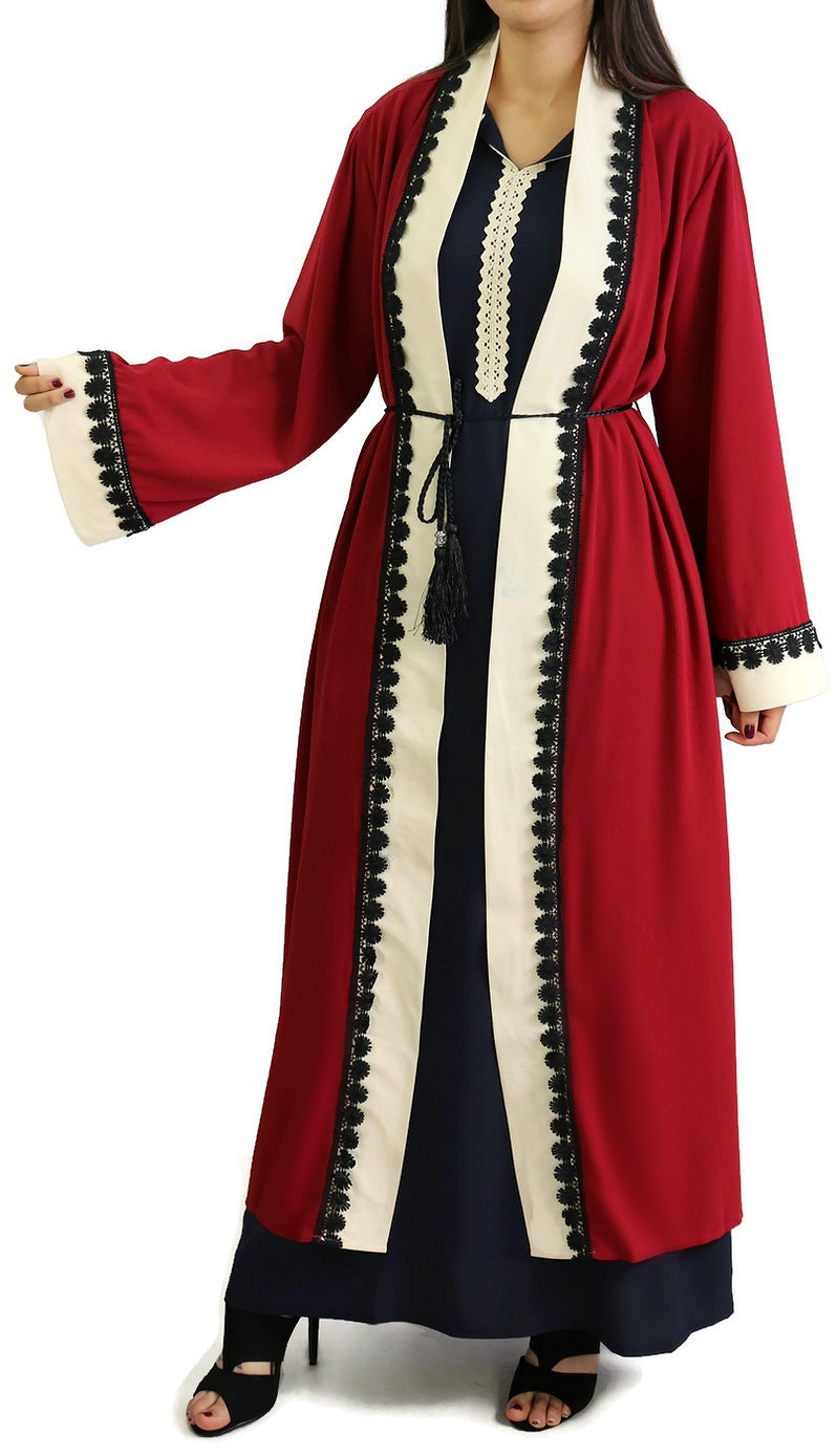 Veste Manteau femme avec ceinture intégrée (Tunique Automne Hiver - Boutique Vêtement Hijab Turque en ligne) - Couleur noir et bordeaux - REF. 35327 (19.90 €)