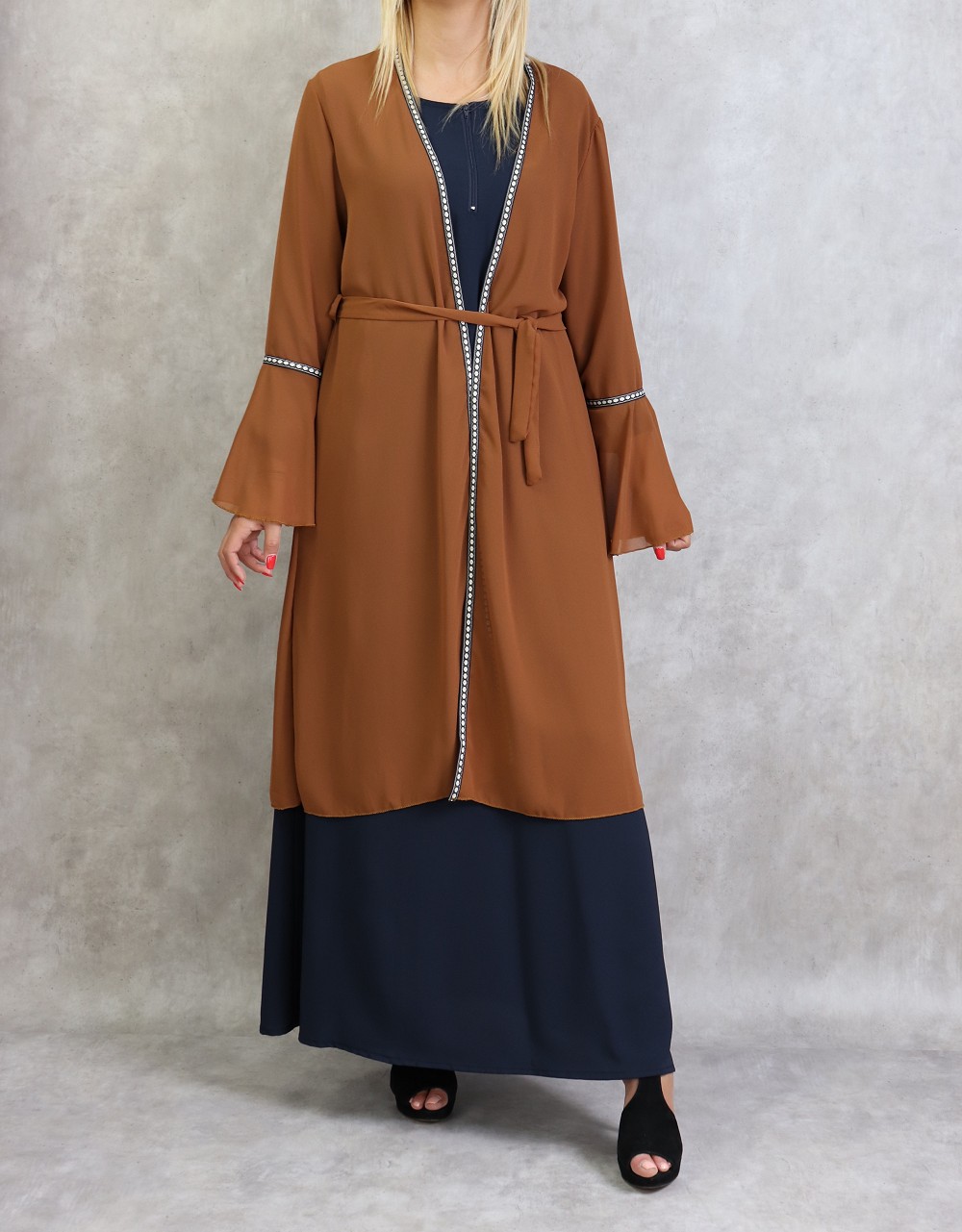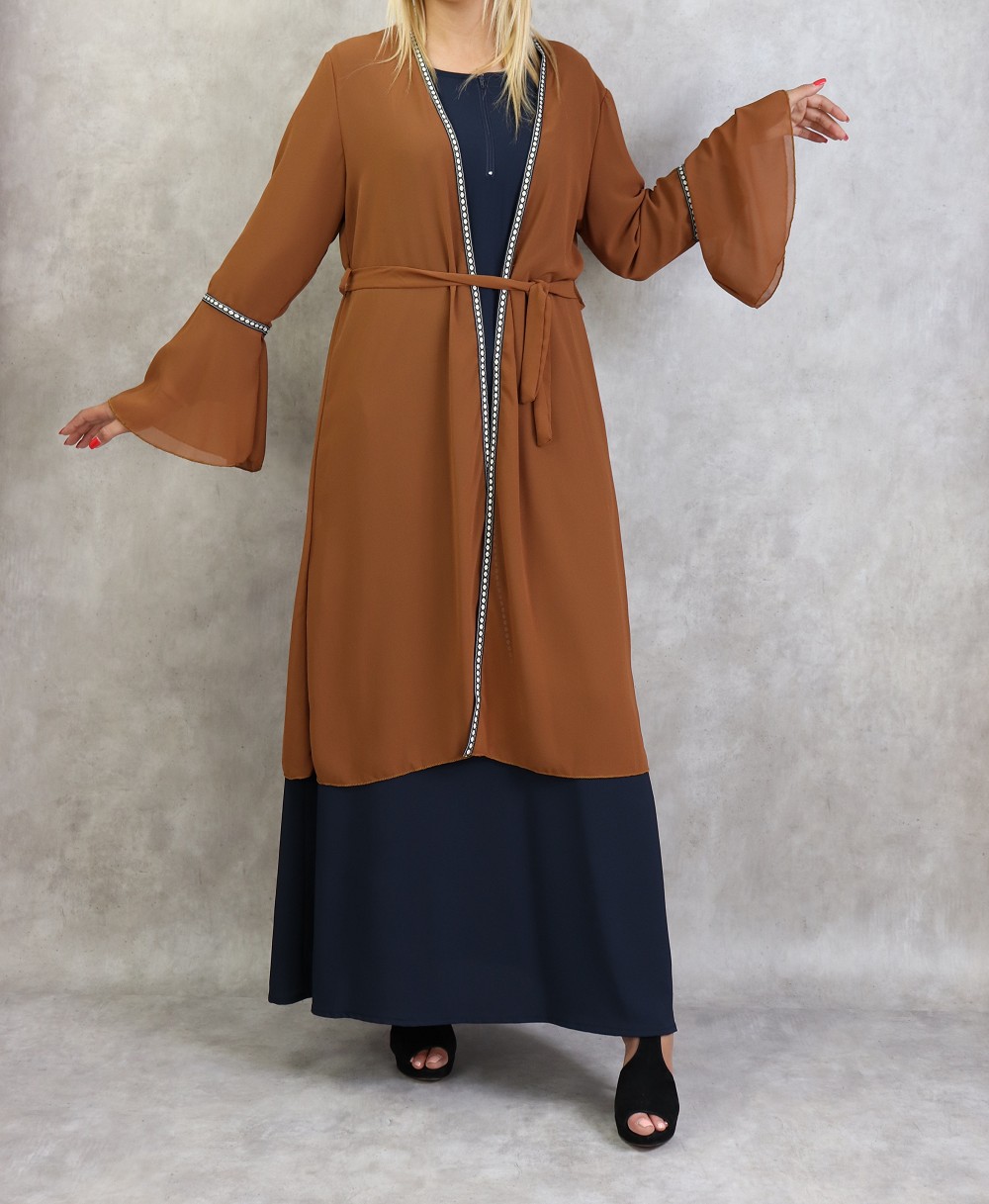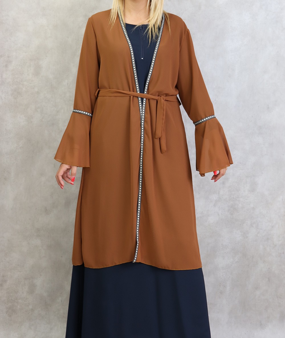 Kimono court avec broderies pour femmes - Couleur marron caramel Vetement & Accessoire