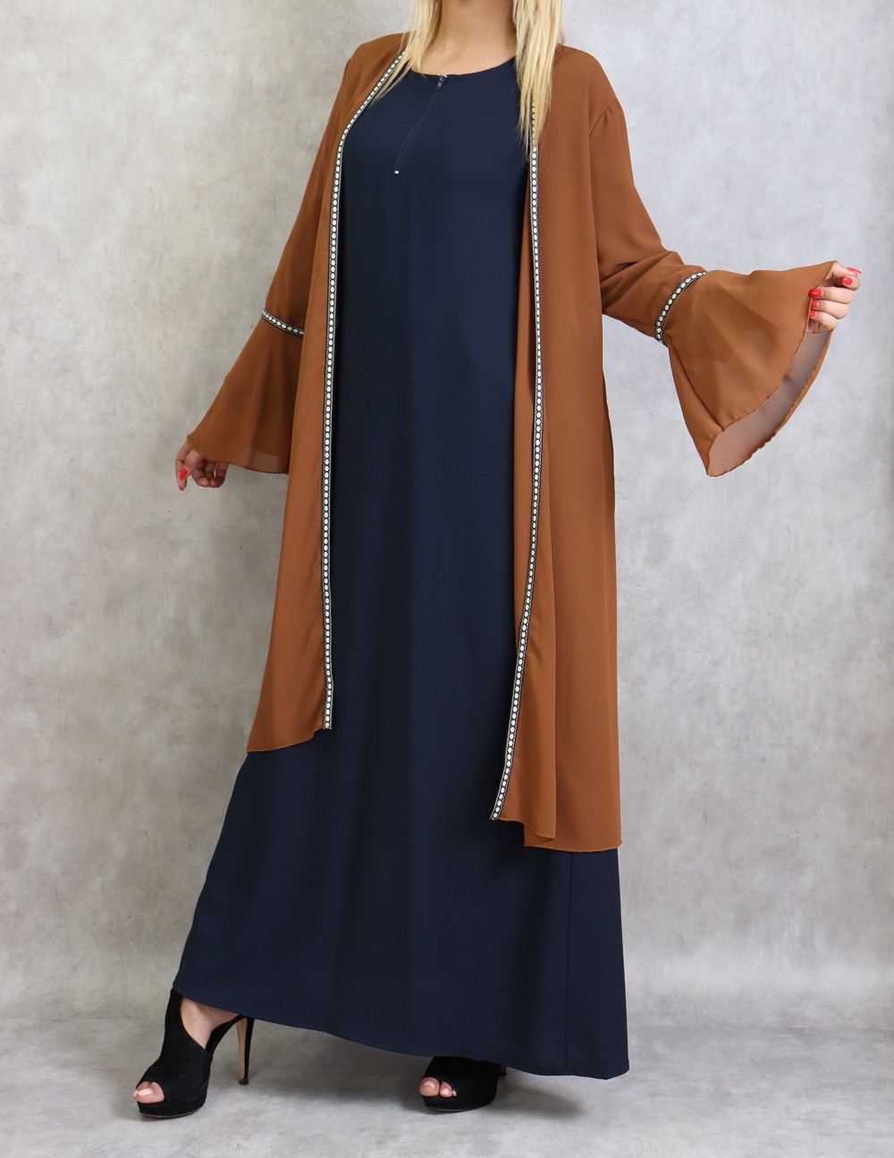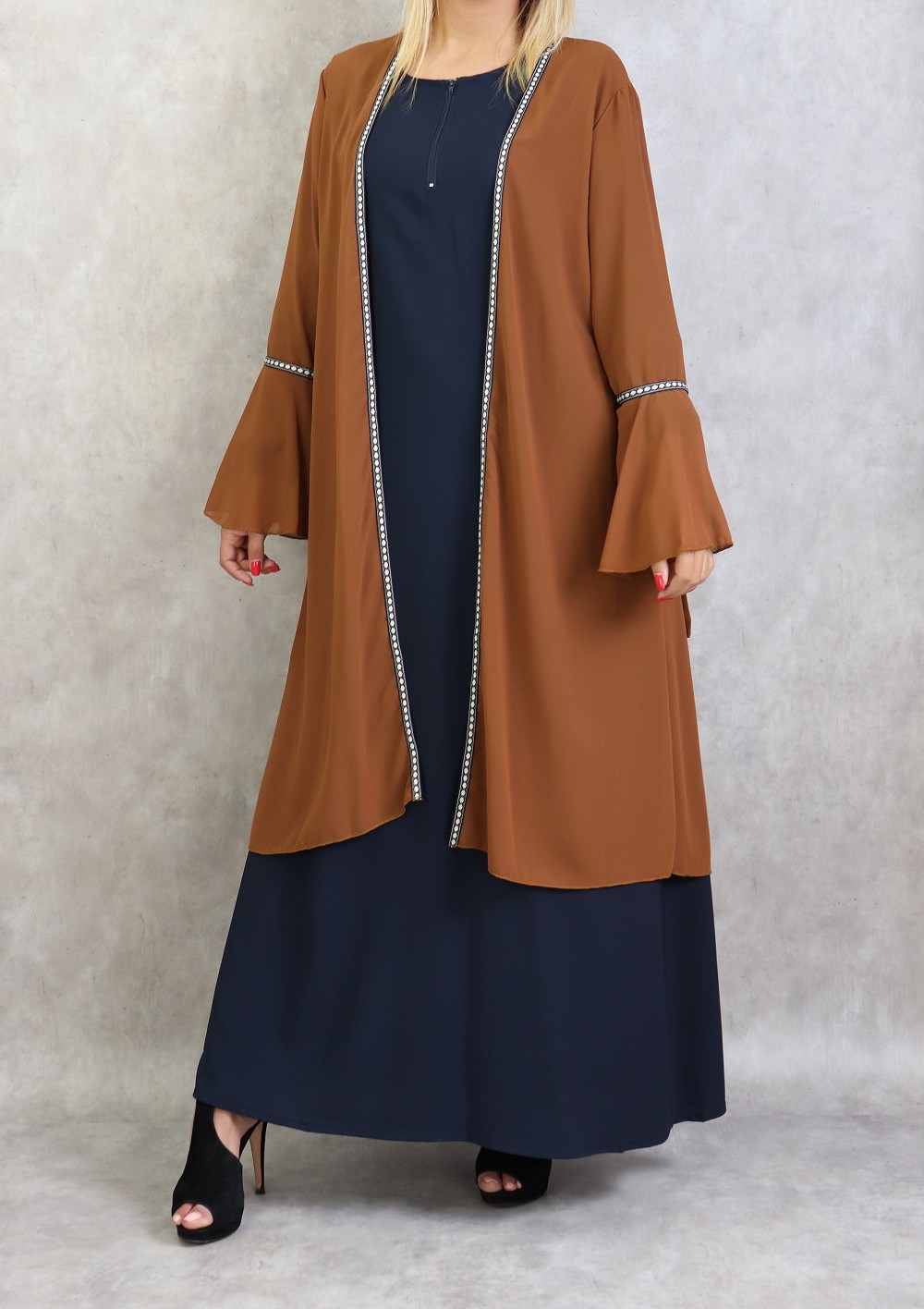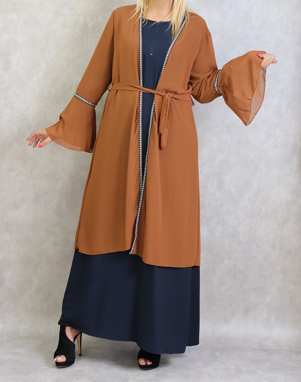 Kimono court avec broderies pour femmes - Couleur marron caramel Vetement & Accessoire