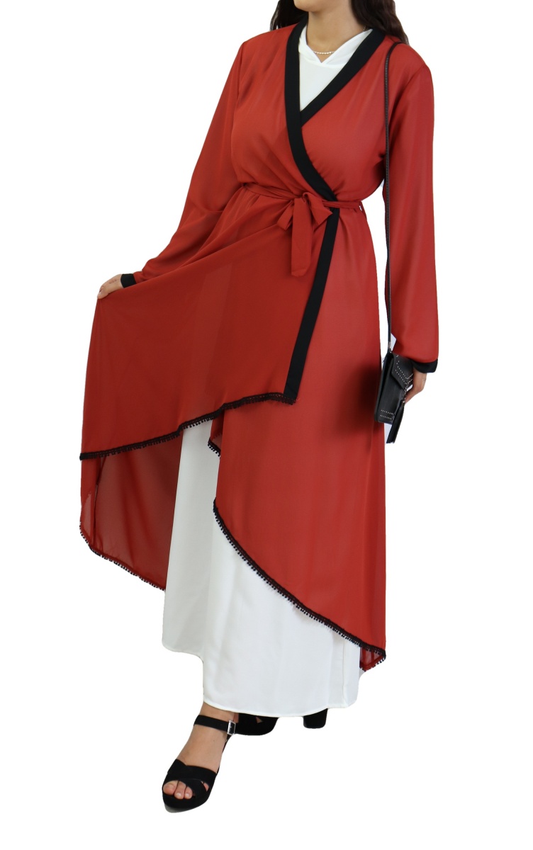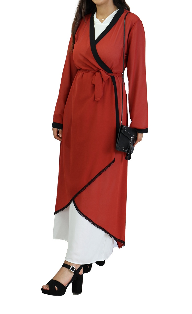 Kimono croisé - Couleur Rouge Brique et Noir Vetement & Accessoire