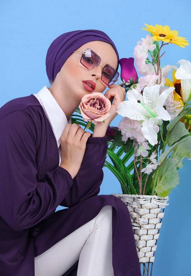 Veste Tunique avec motifs fleurs pour femme - Couleur prune - REF. 35651 (25.00 €)