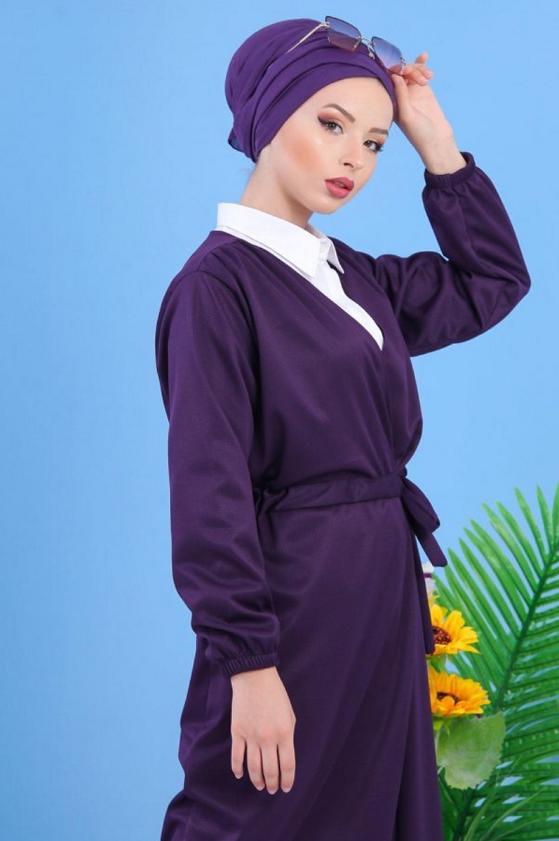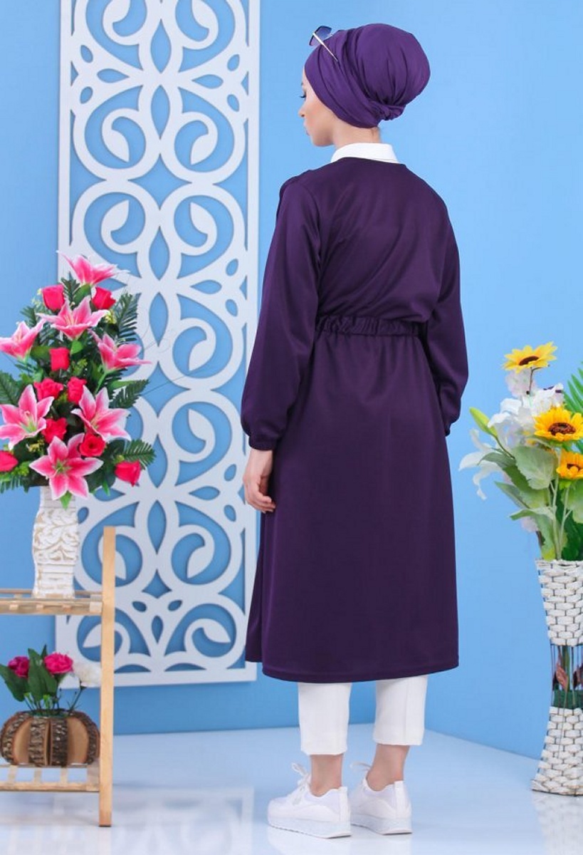 Robe mi longue style Trench (Vêtement hijab) pour femme voilée) - Couleur bordeaux - REF. 33201 (32.00 €)