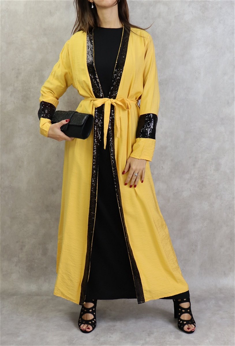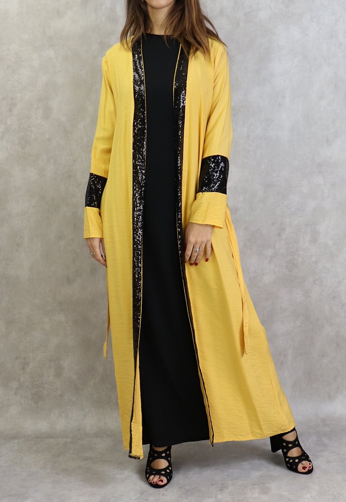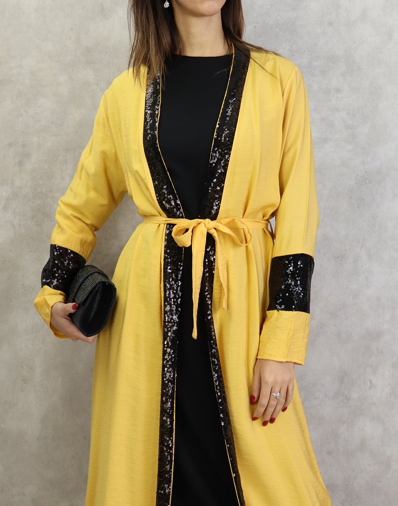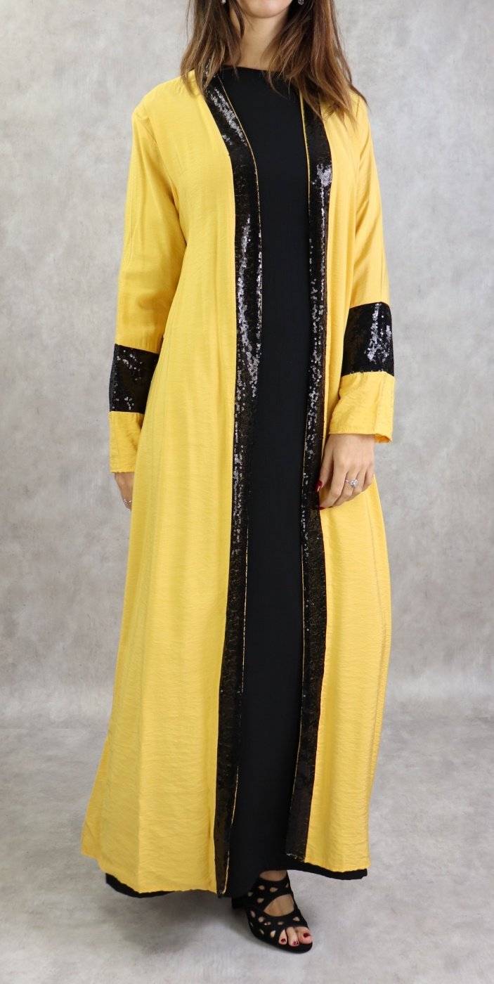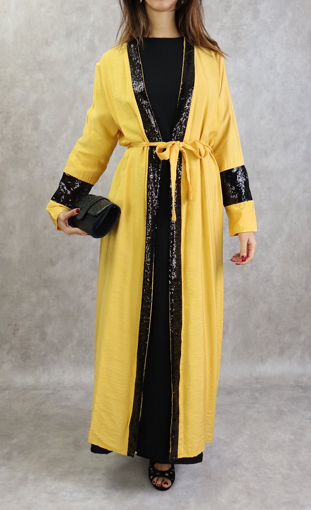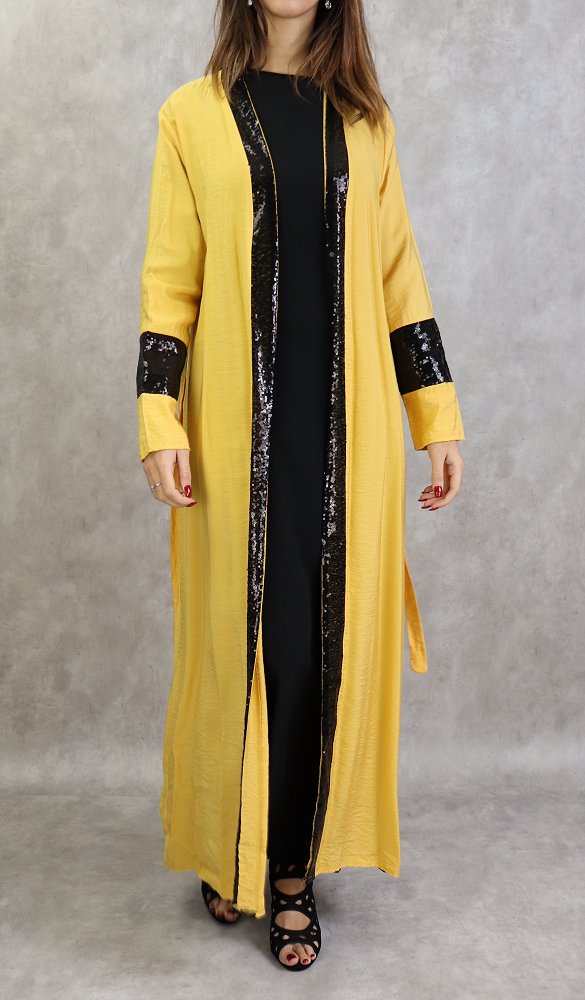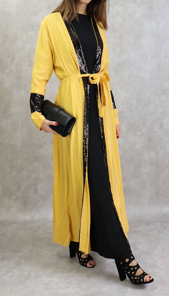 Kimono long à strass de couleur jaune Vetement & Accessoire