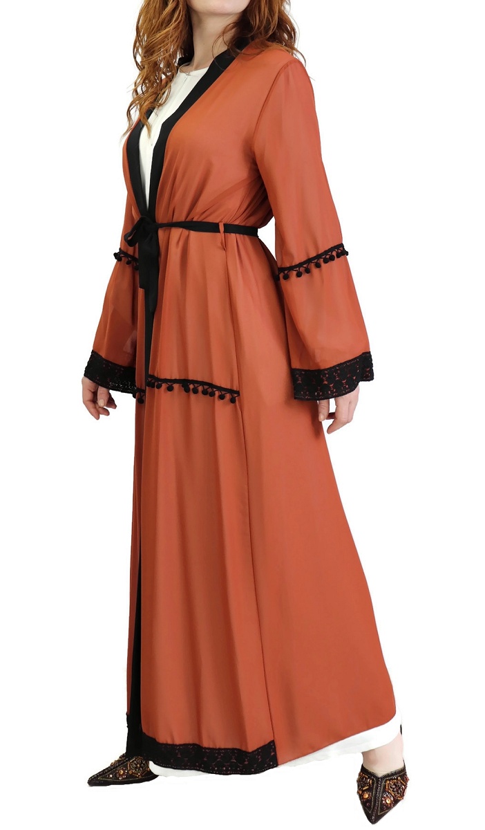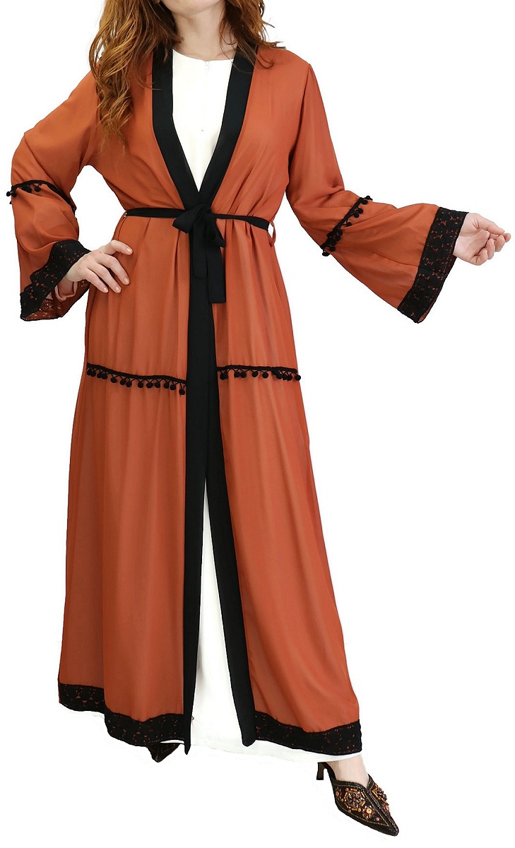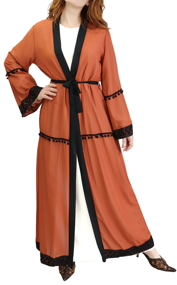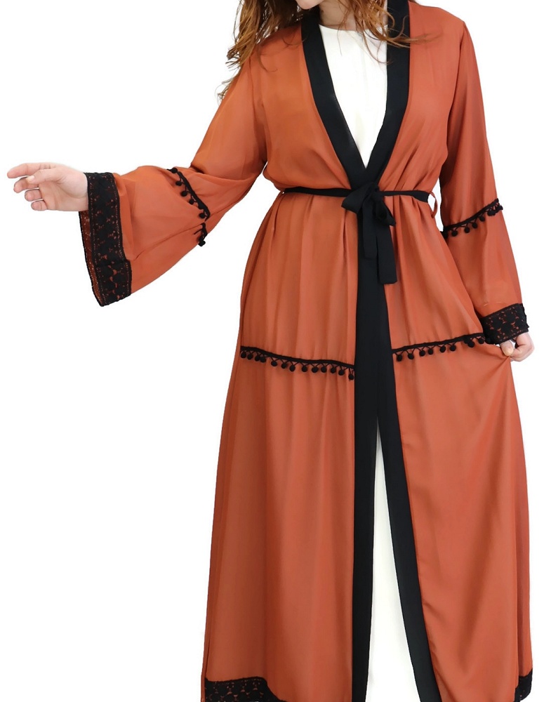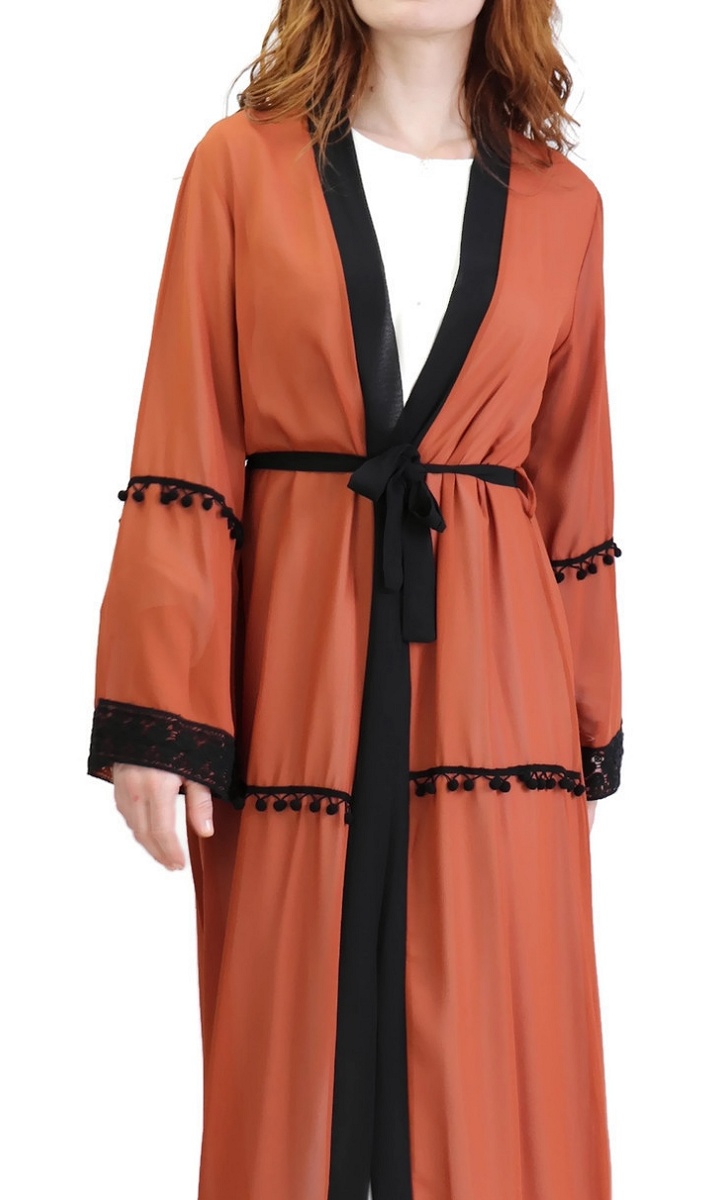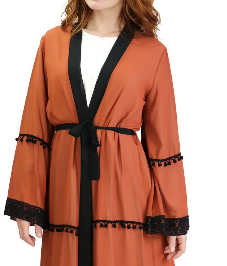 Kimono long (cardigan) en mousseline avec ceinture et broderies - Couleur rouille Vetement & Accessoire