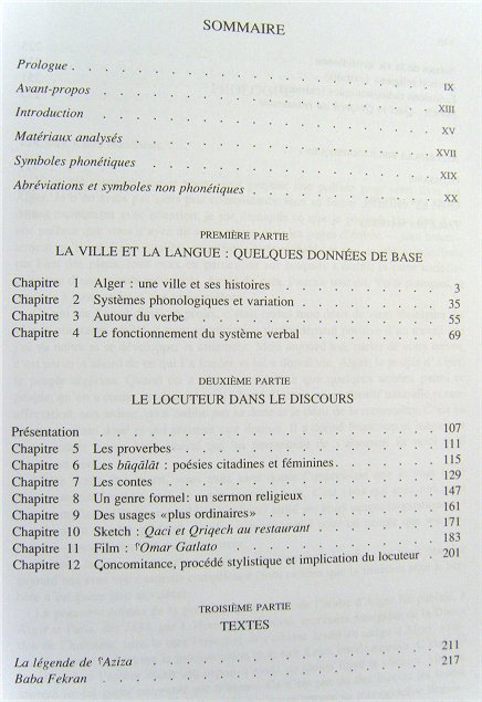 L'ouvrage ne s'adresse pas seulement aux chercheurs désireux de faire avec l'auteur la démarche d'analyse. Qui le lire sera éclairé sur Alger, son histoire, sa littérature, sa vie, qu'il verra reflétées dans l'activité linguistique des Algérois telle que nous le montre un choix de textes fort variés présentés en fin de volume.