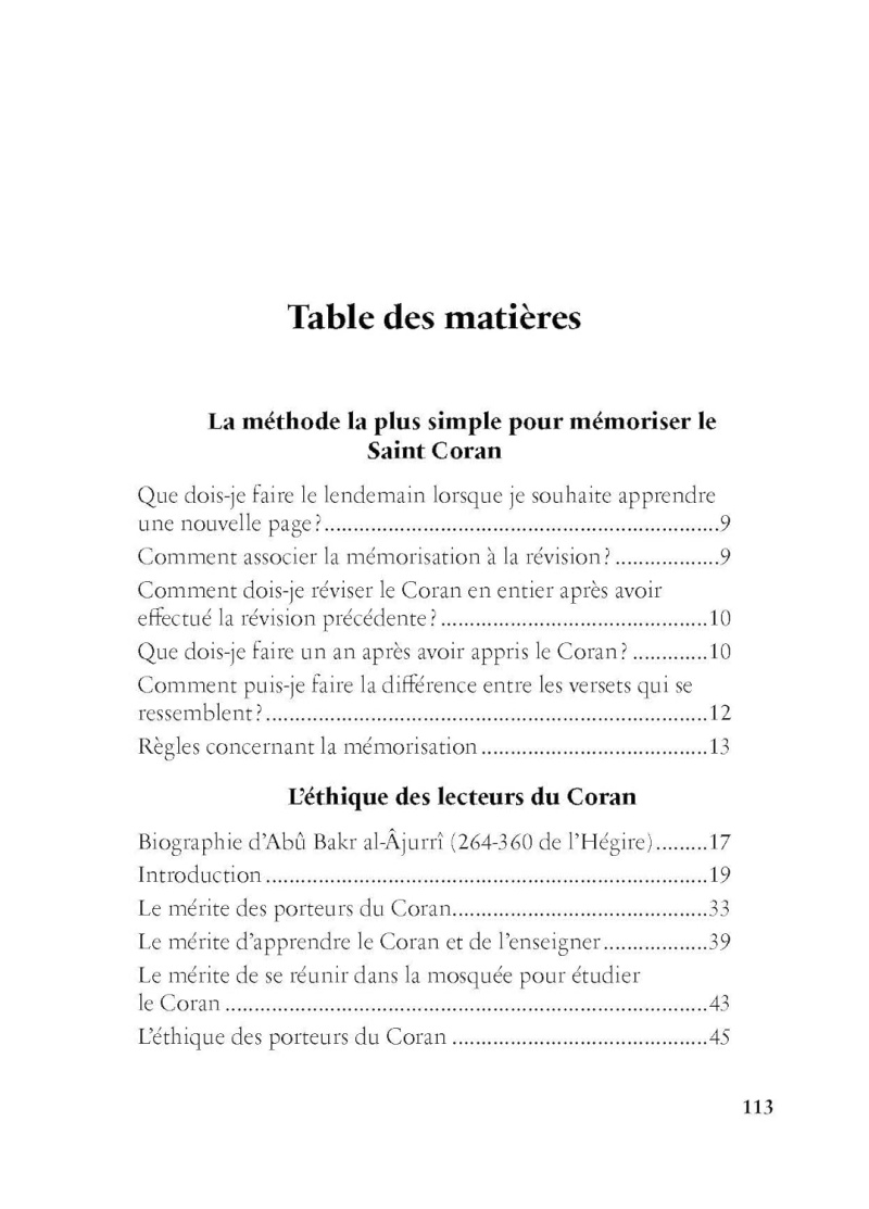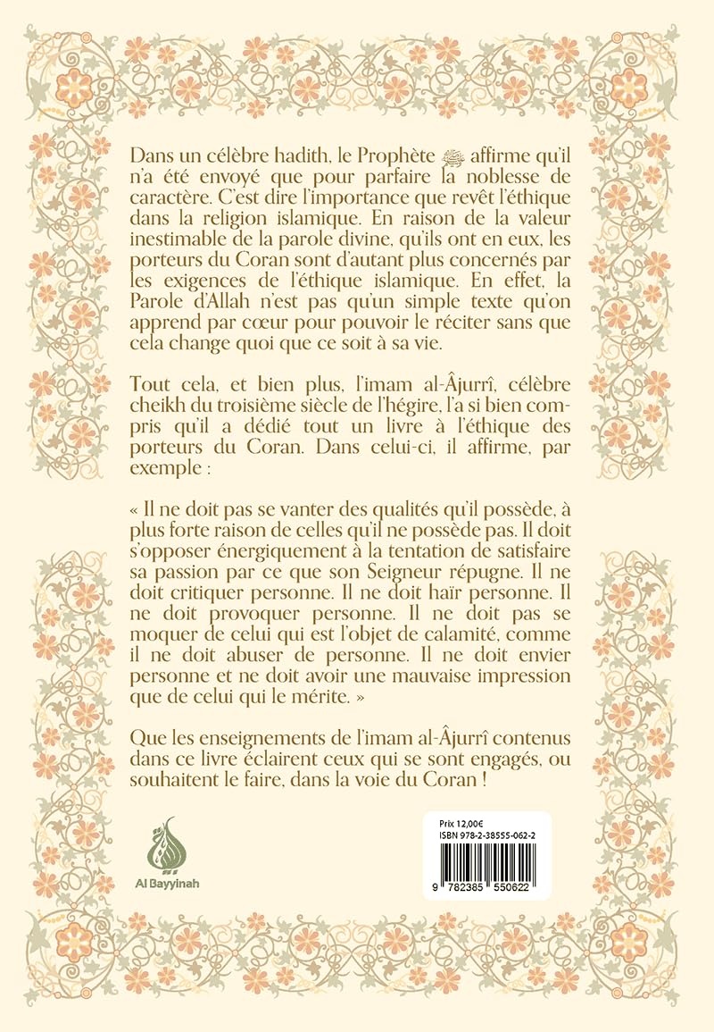Tout cela et bien plus, l'imam al-Âjurrî, célèbre cheikh du troisième siècle de l'hégire. l'a si bien compris qu'il a dédié tout un livre à l'éthique des porteurs du Coran.