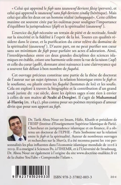 Cet ouvrage précieux constitue une partie de la thèse de doctorat de l’auteur sur un sujet épineux : la relation historique entre le fiqh et le soufisme, ou plutôt entre les fuqahâ (hommes de loi) et les soufis. Cela est exploré à travers la biographie et la contribution d’un grand soufi juriste du 19e siècle, dont les épîtres sages n’ont rien à envier à celles de son maître al-‘Arabi al-Derqâwi. Il s’agit de Muhammad al-Harrâq (m. 1845), plus connu pour ses poèmes mystiques d’amour divin que pour son apport au fiqh.