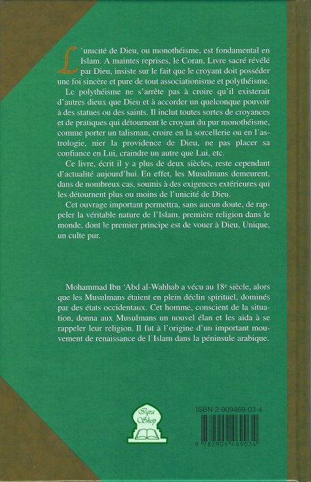 Le monothéisme est fondamental en Islam. Accorder des pouvoirs à un autre que Dieu, porter un talisman,pratiquer la sorcellerie, croire en l'astrologie, nier la Providence de Dieu appartiennent au polythéisme. Ce livre, divisé en chapitres courts mais condensés et argumentés présente les différentes facettes du polythéisme et du monothéisme. Il montre la force et la cohérence de ce dernier,dévoilant ainsi la véritable nature de l'islam tout en déconstruisant les fausses croyances menant au polythéisme.