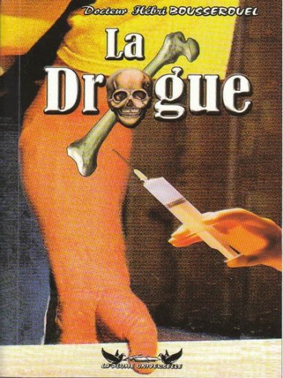 La Drogue est un produit hallucinogène : La marijuana, la mescaline, le L.S.D., le haschisch, l'héroïne, l'opium, la cocaïne, le chanvre indien, l'extasie, etc. Dont l'usage conduit à l'intoxication, à l'accoutumance et à la Toxicomanie. Tous savent qu'elle est dangereuse, fatale, infernale, nocive, et redoutable. L'habitude acquise de la drogue, jette son consommateur dans un abîme sans fond. Dont il est incapable de se redresser. L'être qui est sous l'emprise de la drogue, peut tuer mère et père sans se rendre compte de son abominable acte.