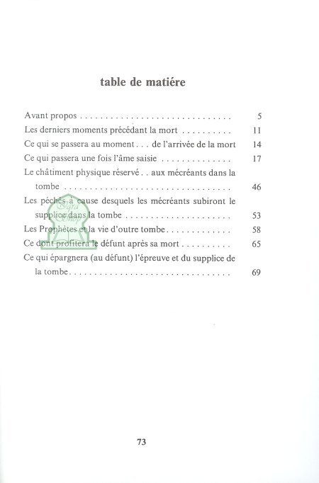 C'est à partir de la connaissance des choses se rapportant au supplice et à la félicité de la tombe, au châtiment du feu et à la béatitude du Paradis ainsi que la foi en ces vérités eschatologiques, qu'on pourra réformer et améliorer l'aspect intérieur de l'être qui, à son tour, implique la réforme et l'amélioration de l'aspect extérieur.