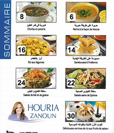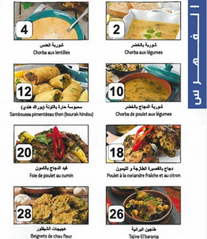 Livre de cuisine avec 15 recettes en photos faciles à préparer. Chaque recette est illustrée par des photos et expliquée en français et en arabe étape par étape.