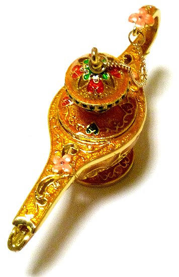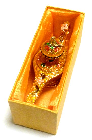 Parfum Musc d'Or "Aladin" - 3ml - Bouteille-Lampe merveilleuse d'Aladin dorée avec fleurs et arabesques - REF. 12950 (12.00 €)