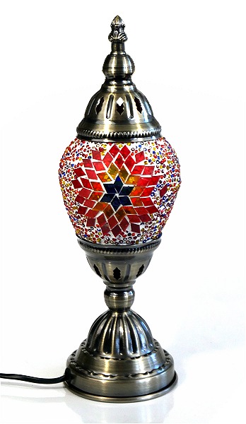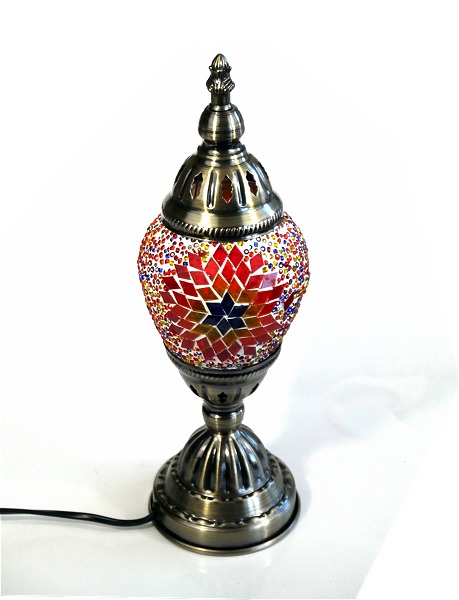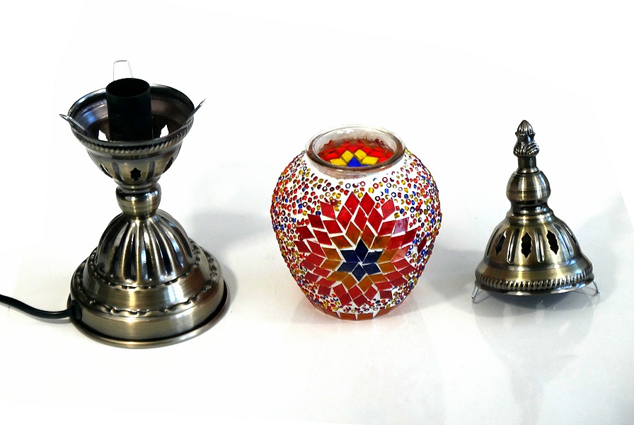 Lampe de table artisanale électrique en verre teintée ornée de mosaïques perlées - REF. 29437 (38.00 €)