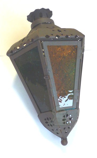Lampe traditionnelle en fer forge avec verres de plusieurs couleurs