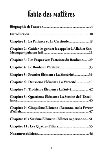 Ce n’est qu’à travers ces étapes que le bonheur, la joie et la droiture peuvent être complétés et assurés."