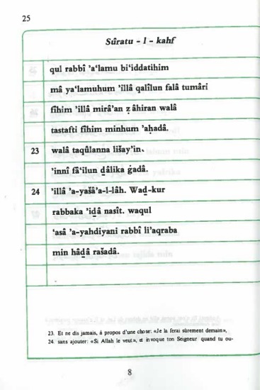 Le Coran - Sourate Al-Kahf (La Caverne, Suratu-l-Kahf) arabe/phonétique/français Livre