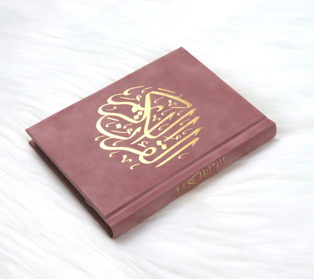 Le Coran couverture rigide de luxe couverture en daim dorée -10 x 14 cm - Couleur Vieux Rose - مصحف ورق المدينة مخمل Livre