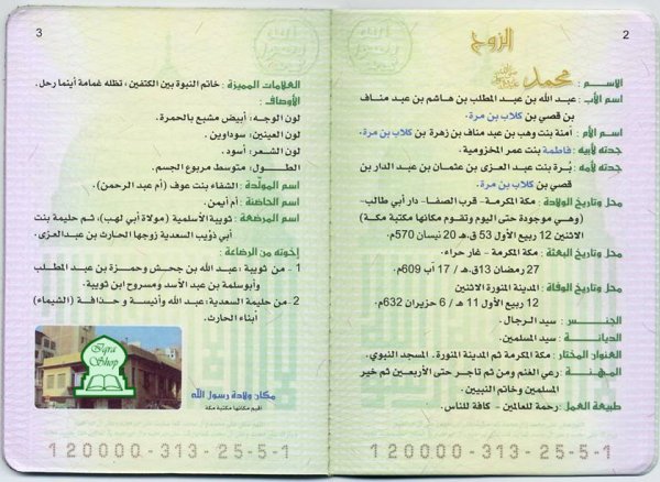 اللهم صل على محمد وعلى آله وصحبه أجمعين البطاقه العائلية للرسول محمد ( صلي الله عليه وسلم ) + صور منزله